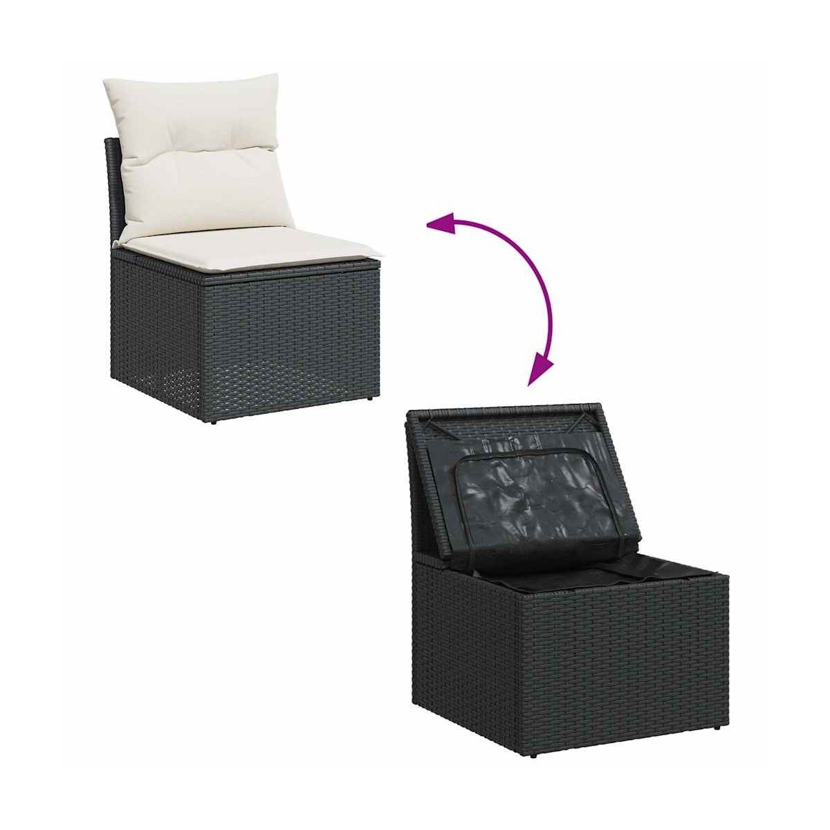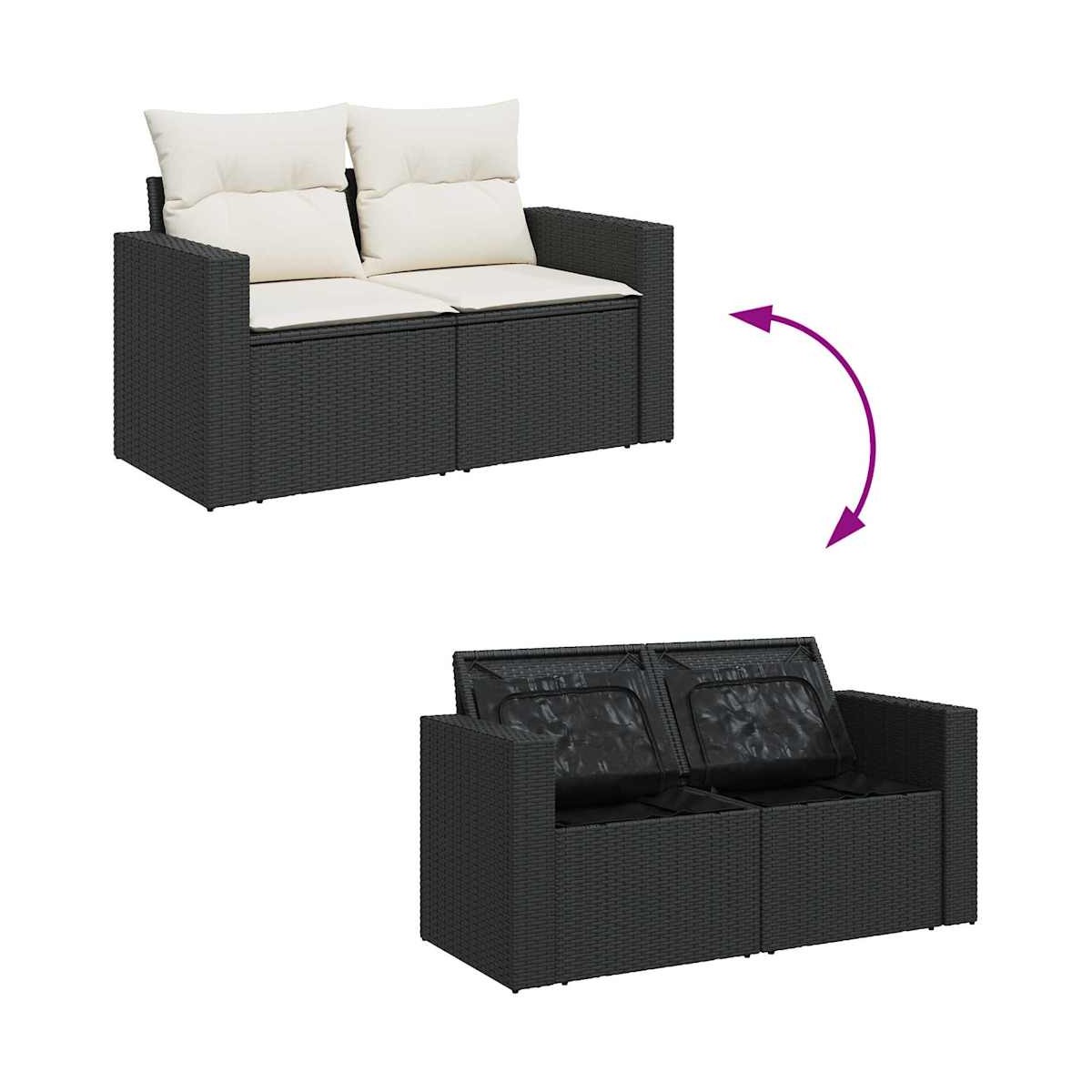 Este conjunto de sofás de jardín es el complemento perfecto para el jardín, terraza o patio, ya que proporciona un espacio confortable y acogedor para charlar con familiares y amigos o simplemente relajarte y disfrutar del aire libre. Material duradero: El ratán sintético, también conocido como ratán sintético, es un material sintético resistente y de bajo mantenimiento que se parece al ratán natural. Es ligero, fácil de limpiar y se usa comúnmente para muebles de exterior debido a su durabilidad y propiedades resistentes a la intemperie.Función de almacenamiento con bolsa resistente al agua: Cada asiento de jardín cuenta con un espacio de almacenamiento debajo del asiento, completo con una bolsa resistente al agua para guardar cojines, juguetes y otros artículos. La bolsa interior tiene una cubierta superior y se puede sujetar de forma segura al asiento con cierres de gancho y bucle para mayor estabilidad.Reposapiés versátil: El taburete es versátil y sirve como un cómodo reposapiés para cuando descanses en el sofá o como asiento adicional en tu jardín.Funda desenfundable y lavable: Estos cojines de asiento cuentan con fundas desenfundables para facilitar el lavado y mantenimiento.Estructura robusta y estable: La estructura de acero con recubrimiento en polvo es fuerte, estable, duradero y resistente a la corrosión y a las inclemencias del tiempo, lo que garantiza un rendimiento duradero. Información útil:Para asegurarte de que tus muebles de exterior se mantengan hermosos, recomendamos protegerlos con una funda impermeable.