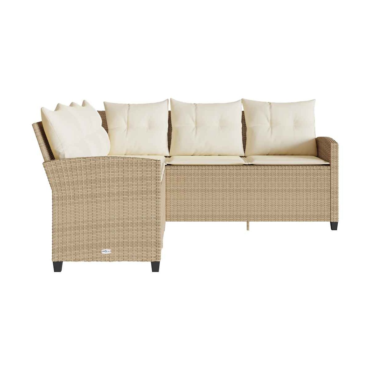 Este sofá en forma de L es una excelente opción para cenar al aire libre o simplemente relajarse en el jardín, el patio o la terraza. Material duradero: El ratán sintético, también conocido como ratán sintético, es un material sintético resistente y de bajo mantenimiento que se parece al ratán natural. Es ligero, fácil de limpiar y se usa comúnmente para muebles de exterior debido a su durabilidad y propiedades resistentes a la intemperie.Estructura robusta y estable: La estructura de acero con recubrimiento en polvo garantiza que el mueble de jardín sea resistente y estable para usarlo a diario al aire libre.Experiencia de asiento cómoda: Estos muebles de exterior, completos con cojines acolchados gruesos, ofrecen una experiencia de asiento cómoda.Funda desenfundable y lavable: Estos cojines de asiento cuentan con fundas desenfundables para facilitar el lavado y mantenimiento. Información útil:Para asegurarte de que tus muebles de exterior se mantengan hermosos, recomendamos protegerlos con una funda impermeable.