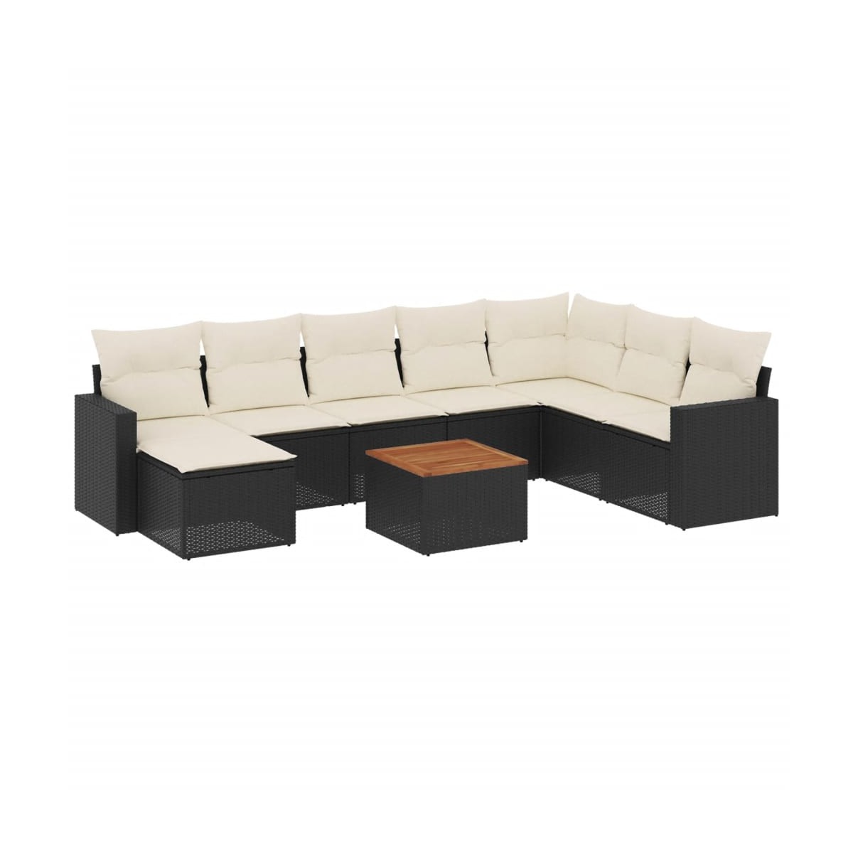 Este conjunto de sofás de jardín es el complemento perfecto para el jardín, terraza o patio, ya que proporciona un espacio confortable y acogedor para charlar con familiares y amigos o simplemente relajarte y disfrutar del aire libre. Material duradero: El ratán PE, también conocido como ratán sintético, es un material sintético resistente y de bajo mantenimiento que se parece al ratán natural. Es ligero, fácil de limpiar y se usa comúnmente para muebles de exterior debido a su durabilidad y propiedades resistentes a la intemperie.Función de almacenaje con bolsa impermeable: Cada asiento de jardín cuenta con espacio de almacenamiento debajo del asiento, completo con una bolsa resistente al agua para guardar cojines, juguetes y otros artículos. Las bolsas interiores tienen una cubierta superior y pueden fijarse firmemente a los asientos con cierres adhesivos para mayor estabilidad.Superficie estable y fácil de limpiar: Esta mesa de jardín tiene una superficie de madera de acacia que es resistente, duradero y fácil de limpiar con un paño húmedo.Práctica mesa auxiliar: Este mueble de exterior cuenta con una mesa auxiliar plegable con un resorte de gas en los reposabrazos, lo que proporciona un lugar conveniente para mantener tus elementos esenciales al alcance de la mano.Diseño modular: Este conjunto de muebles de exterior tiene un diseño modular, por lo que es completamente flexible y fácil de mover, para que puedas crear una disposición de muebles de exterior personalizada. Información útil:Para asegurarte de que tus muebles de exterior se mantengan hermosos, recomendamos protegerlos con una funda impermeable.