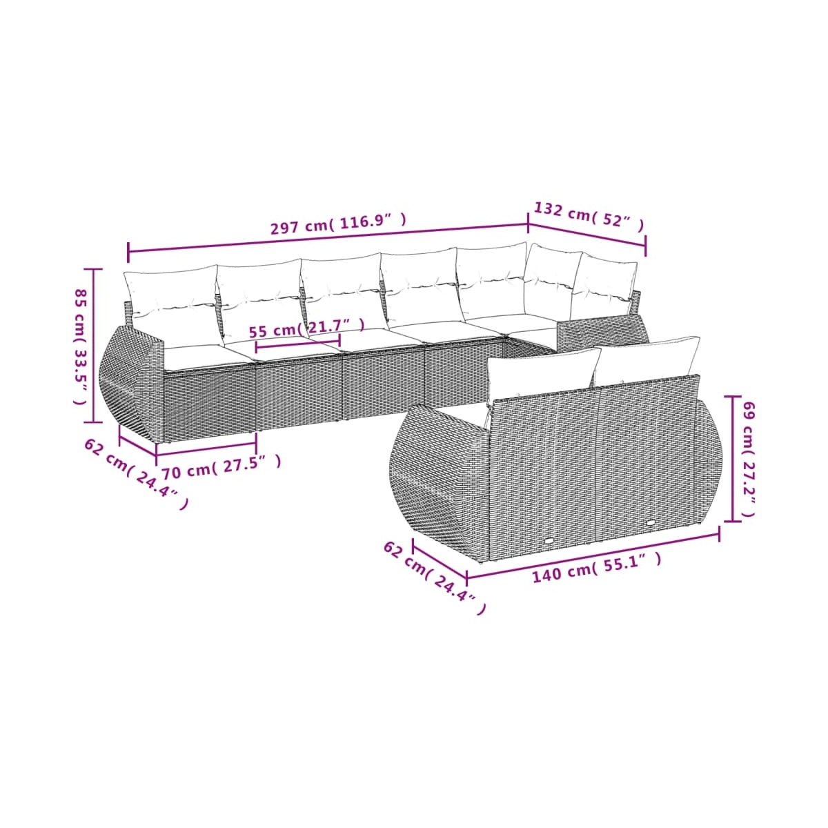 Este conjunto de sofás de jardín es el complemento perfecto para el jardín, terraza o patio, ya que proporciona un espacio confortable y acogedor para charlar con familiares y amigos o simplemente relajarte y disfrutar del aire libre. Material duradero: El ratán PE, también conocido como ratán sintético, es un material sintético resistente y de bajo mantenimiento que se parece al ratán natural. Es ligero, fácil de limpiar y se usa comúnmente para muebles de exterior debido a su durabilidad y propiedades resistentes a la intemperie.Función de almacenaje con bolsa impermeable: Cada asiento de jardín cuenta con espacio de almacenamiento debajo del asiento, completo con una bolsa resistente al agua para guardar cojines, juguetes y otros artículos. Las bolsas interiores tienen una cubierta superior y pueden fijarse firmemente a los asientos con cierres adhesivos para mayor estabilidad.Funda desenfundable y lavable: Estos cojines de asiento cuentan con fundas desenfundables para facilitar el lavado y mantenimiento.Diseño modular: Este conjunto de muebles de exterior tiene un diseño modular, por lo que es completamente flexible y fácil de mover, para que puedas crear una disposición de muebles de exterior personalizada. Información útil:Para asegurarte de que tus muebles de exterior se mantengan hermosos, recomendamos protegerlos con una funda impermeable.