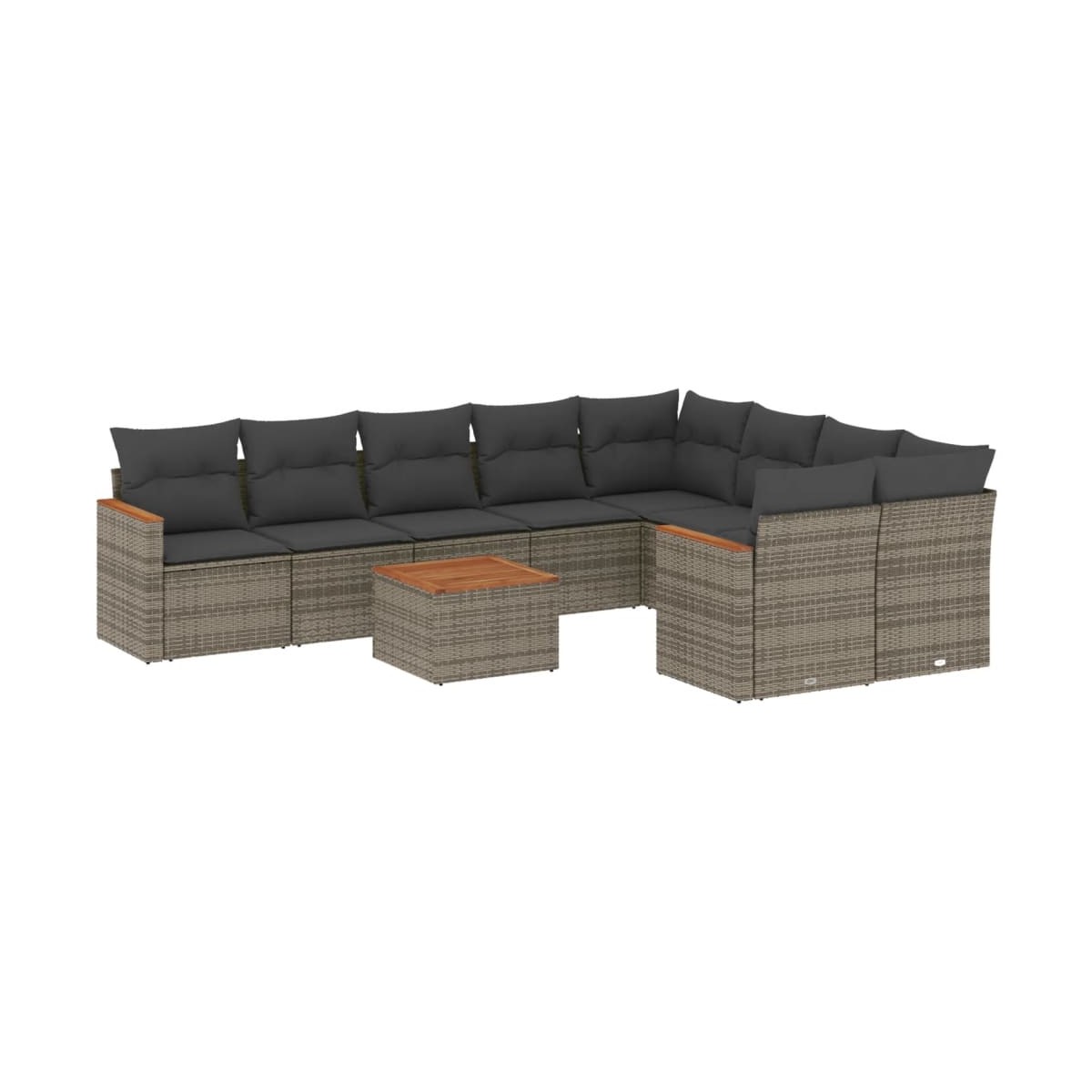 Este conjunto de sofás de jardín es el complemento perfecto para el jardín, terraza o patio, ya que proporciona un espacio confortable y acogedor para charlar con familiares y amigos o simplemente relajarte y disfrutar del aire libre. Material duradero: El ratán PE, también conocido como ratán sintético, es un material sintético resistente y de bajo mantenimiento que se parece al ratán natural. Es ligero, fácil de limpiar y se usa comúnmente para muebles de exterior debido a su durabilidad y propiedades resistentes a la intemperie.Función de almacenamiento con bolsa resistente al agua: El mueble de jardín cuenta con espacio de almacenamiento debajo del asiento, completo con una bolsa resistente al agua para guardar cojines, juguetes y otros artículos. La bolsa interior se puede sujetar de forma segura a los muebles de exterior con cierres de gancho y bucle para mayor estabilidad.Superficie estable y fácil de limpiar: Esta mesa de jardín tiene una superficie de madera de acacia que es resistente, duradero y fácil de limpiar con un paño húmedo.Funda desenfundable y lavable: Estos cojines de asiento cuentan con fundas desenfundables para facilitar el lavado y mantenimiento.Diseño modular: Este conjunto de muebles de exterior tiene un diseño modular, por lo que es completamente flexible y fácil de mover, para que puedas crear una disposición de muebles de exterior personalizada. Información útil:Para asegurarte de que tus muebles de exterior se mantengan hermosos, recomendamos protegerlos con una funda impermeable.