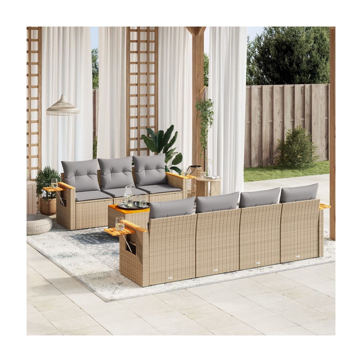 Este conjunto de sofás de jardín es el complemento perfecto para el jardín, terraza o patio, ya que proporciona un espacio confortable y acogedor para charlar con familiares y amigos o simplemente relajarte y disfrutar del aire libre. Material duradero: El ratán PE, también conocido como ratán sintético, es un material sintético resistente y de bajo mantenimiento que se parece al ratán natural. Es ligero, fácil de limpiar y se usa comúnmente para muebles de exterior debido a su durabilidad y propiedades resistentes a la intemperie.Función de almacenamiento con bolsa resistente al agua: El mueble de jardín cuenta con espacio de almacenamiento debajo del asiento, completo con una bolsa resistente al agua para guardar cojines, juguetes y otros artículos. La bolsa interior se puede sujetar de forma segura a los muebles de exterior con cierres de gancho y bucle para mayor estabilidad.Cómoda mesa auxiliar: Este mueble de exterior cuenta con una mesa auxiliar plegable con un resorte de gas en los reposabrazos, lo que proporciona un lugar conveniente para mantener tus elementos esenciales al alcance de la mano.Funda desenfundable y lavable: Estos cojines de asiento cuentan con fundas desenfundables para facilitar el lavado y mantenimiento.Diseño modular: Este conjunto de muebles de exterior tiene un diseño modular, por lo que es completamente flexible y fácil de mover, para que puedas crear una disposición de muebles de exterior personalizada. Información útil:Para asegurarte de que tus muebles de exterior se mantengan hermosos, recomendamos protegerlos con una funda impermeable.