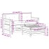 Este juego de sofás de jardín de madera, con un diseño de listones, será un gran complemento para el jardín, el patio o la terraza, para poder disfrutar de un rato agradable con la familia o los amigos. Madera maciza de abeto douglas: La madera maciza de abeto douglas es madera muy duradera que funciona bien para exteriores. La madera de pino douglas también es lo bastante fuerte para trabajar con el mínimo cuidado, incluso bajo la influencia del clima.Diseño de listones: El diseño de listones de la silla de jardín de madera evita la acumulación de agua, manteniendo el asiento seco y evitando que se pudra innecesariamente.Cómodo asiento: El respaldo y el reposabrazos aportan un plus de comodidad al juego de muebles de jardín. Además, el cojín grueso y acolchado proporciona comodidad al asiento.Uso versátil: La otomana de exterior con tapa no solo se puede usar para sentarse o relajar los pies, sino que también se puede usar como mesa de centro para poner las bebidas y la comida. El mueble de jardín cuentan con espacio de almacenamiento debajo del asiento. Diseño modular: Este conjunto de muebles de exterior tiene un diseño modular, por lo que es completamente flexible y fácil de mover, para que puedas crear una disposición de muebles de exterior personalizada. Información útil:Para asegurarte de que tus muebles de exterior se mantengan hermosos, recomendamos protegerlos con una funda impermeable.