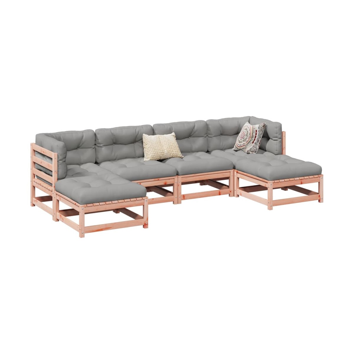 Este conjunto de sofás de jardín es el complemento perfecto para el jardín, terraza o patio, ya que proporciona un espacio confortable y acogedor para charlar con familiares y amigos o simplemente relajarte y disfrutar del aire libre. Material resistente y duradero: La madera de abeto Douglas es conocida por su resistencia y durabilidad. Su intenso color marrón rojizo y su veteado único transmiten un ambiente cálido y natural. Con una buena estabilidad y resistencia a la intemperie, es ideal para fabricar muebles de interior y exterior.Experiencia de asiento cómoda: Estos muebles de exterior, completos con cojines acolchados gruesos, ofrecen una experiencia de asiento cómoda.Buena ventilación y prevención de encharcamientos: El diseño de rejilla favorece un flujo de aire óptimo y evita eficazmente la acumulación de agua, lo que garantiza un asiento seco y cómodo.Diseño modular: Este conjunto de muebles de exterior tiene un diseño modular, por lo que es completamente flexible y fácil de mover, para que puedas crear una disposición de muebles de exterior personalizada. Información útil:Para asegurarte de que tus muebles de exterior se mantengan hermosos, recomendamos protegerlos con una funda impermeable.