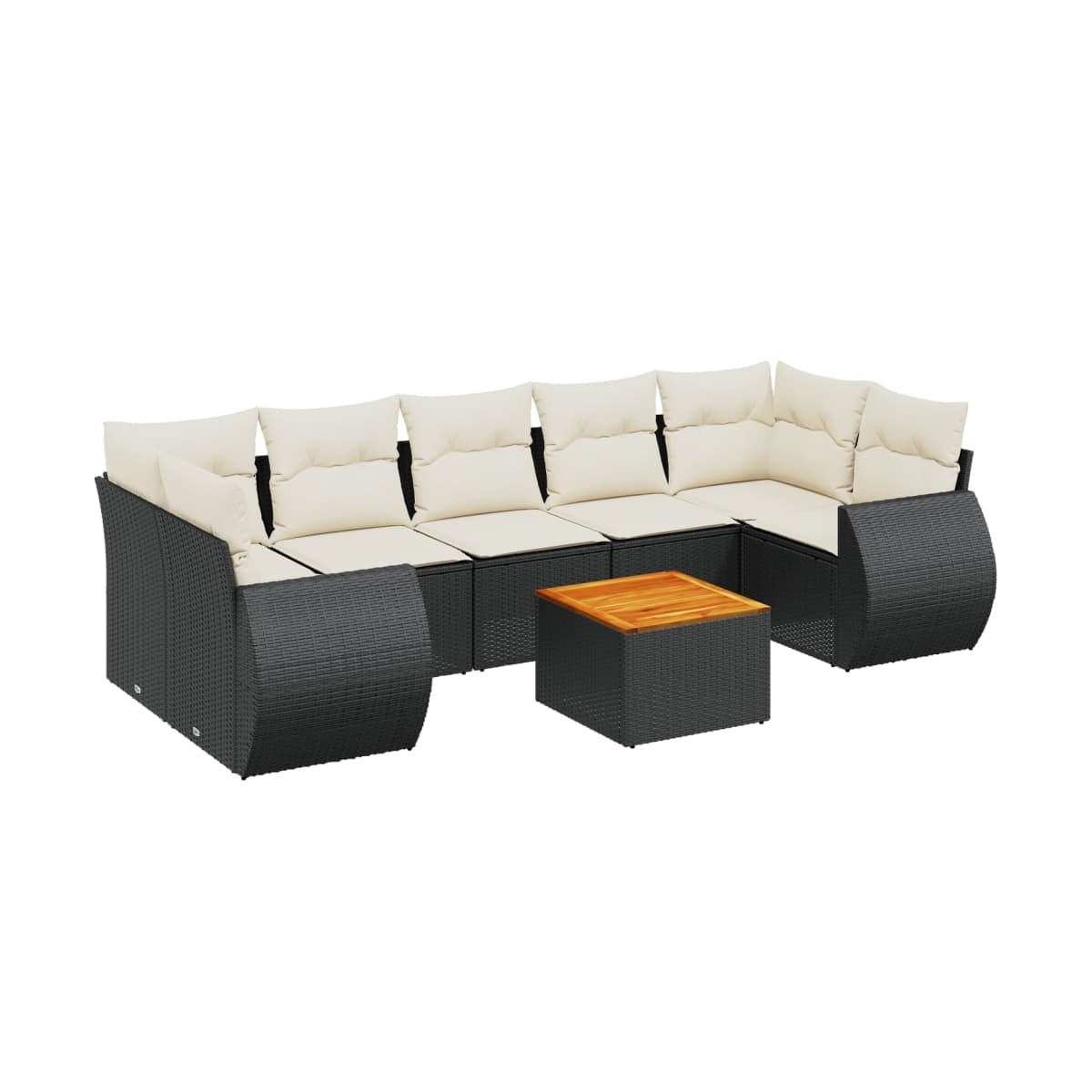 Este conjunto de sofás de jardín es el complemento perfecto para el jardín, terraza o patio, ya que proporciona un espacio confortable y acogedor para charlar con familiares y amigos o simplemente relajarte y disfrutar del aire libre. Material duradero: El ratán PE, también conocido como ratán sintético, es un material sintético resistente y de bajo mantenimiento que se parece al ratán natural. Es ligero, fácil de limpiar y se usa comúnmente para muebles de exterior debido a su durabilidad y propiedades resistentes a la intemperie.Superficie estable y fácil de limpiar: Esta mesa de jardín tiene una superficie de madera de acacia que es resistente, duradero y fácil de limpiar con un paño húmedo. Función de almacenaje con bolsa impermeable: Cada asiento de jardín cuenta con espacio de almacenamiento debajo del asiento, completo con una bolsa resistente al agua para guardar cojines, juguetes y otros artículos. Las bolsas interiores tienen una cubierta superior y pueden fijarse firmemente a los asientos con cierres adhesivos para mayor estabilidad.Experiencia de asiento cómoda: Estos muebles de exterior, completos con cojines acolchados gruesos, ofrecen una experiencia de asiento cómoda.Diseño modular: Este conjunto de muebles de exterior tiene un diseño modular, por lo que es completamente flexible y fácil de mover, para que puedas crear una disposición de muebles de exterior personalizada. Información útil:Para asegurarte de que tus muebles de exterior se mantengan hermosos, recomendamos protegerlos con una funda impermeable.