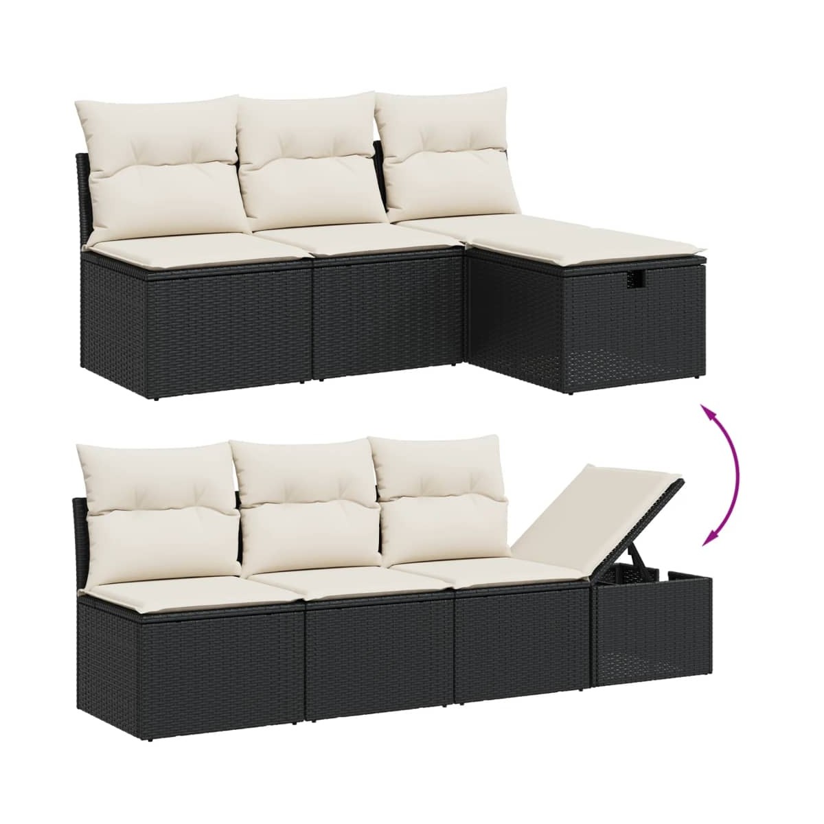 Este conjunto de sofás de jardín es el complemento perfecto para el jardín, terraza o patio, ya que proporciona un espacio confortable y acogedor para charlar con familiares y amigos o simplemente relajarte y disfrutar del aire libre. Material duradero: El ratán PE, también conocido como ratán sintético, es un material sintético resistente y de bajo mantenimiento que se parece al ratán natural. Es ligero, fácil de limpiar y se usa comúnmente para muebles de exterior debido a su durabilidad y propiedades resistentes a la intemperie.Superficie estable y fácil de limpiar: Esta mesa de jardín tiene una superficie de madera de acacia que es resistente, duradero y fácil de limpiar con un paño húmedo.Funda desenfundable y lavable: Estos cojines de asiento cuentan con fundas desenfundables para facilitar el lavado y mantenimiento.Estructura robusta y estable: La estructura de acero con recubrimiento en polvo garantiza que el mueble de jardín sea resistente y estable para usarlo a diario al aire libre.Diseño modular: Este conjunto de muebles de exterior tiene un diseño modular, por lo que es completamente flexible y fácil de mover, para que puedas crear una disposición de muebles de exterior personalizada. Información útil:Para asegurarte de que tus muebles de exterior se mantengan hermosos, recomendamos protegerlos con una funda impermeable.