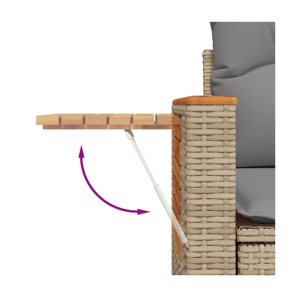 Este conjunto de sofás de jardín es el complemento perfecto para el jardín, terraza o patio, ya que proporciona un espacio confortable y acogedor para charlar con familiares y amigos o simplemente relajarte y disfrutar del aire libre. Material duradero: El ratán PE, también conocido como ratán sintético, es un material sintético resistente y de bajo mantenimiento que se parece al ratán natural. Es ligero, fácil de limpiar y se usa comúnmente para muebles de exterior debido a su durabilidad y propiedades resistentes a la intemperie.Cómoda mesa auxiliar: Este mueble de exterior cuenta con una mesa auxiliar plegable con un resorte de gas en los reposabrazos, lo que proporciona un lugar conveniente para mantener tus elementos esenciales al alcance de la mano.Funda desenfundable y lavable: Estos cojines de asiento cuentan con fundas desenfundables para facilitar el lavado y mantenimiento.Diseño modular: Este conjunto de muebles de exterior tiene un diseño modular, por lo que es completamente flexible y fácil de mover, para que puedas crear una disposición de muebles de exterior personalizada. Información útil:Para asegurarte de que tus muebles de exterior se mantengan hermosos, recomendamos protegerlos con una funda impermeable.