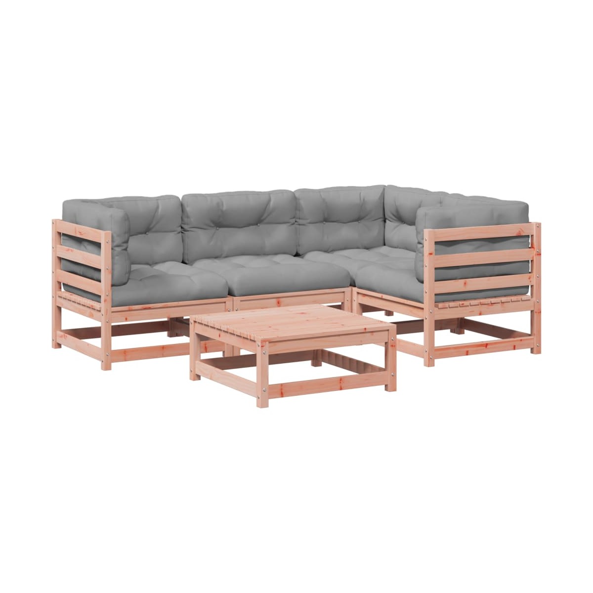 Este conjunto de sofás de jardín es el complemento perfecto para el jardín, terraza o patio, ya que proporciona un espacio confortable y acogedor para charlar con familiares y amigos o simplemente relajarte y disfrutar del aire libre. Material resistente y duradero: La madera de abeto Douglas es conocida por su resistencia y durabilidad. Su intenso color marrón rojizo y su veteado único transmiten un ambiente cálido y natural. Con una buena estabilidad y resistencia a la intemperie, es ideal para fabricar muebles de interior y exterior.Experiencia de asiento cómoda: Estos muebles de exterior, completos con cojines acolchados gruesos, ofrecen una experiencia de asiento cómoda.Buena ventilación y prevención de encharcamientos: El diseño de rejilla favorece un flujo de aire óptimo y evita eficazmente la acumulación de agua, lo que garantiza un asiento seco y cómodo.Diseño modular: Este conjunto de muebles de exterior tiene un diseño modular, por lo que es completamente flexible y fácil de mover, para que puedas crear una disposición de muebles de exterior personalizada. Información útil:Para asegurarte de que tus muebles de exterior se mantengan hermosos, recomendamos protegerlos con una funda impermeable.