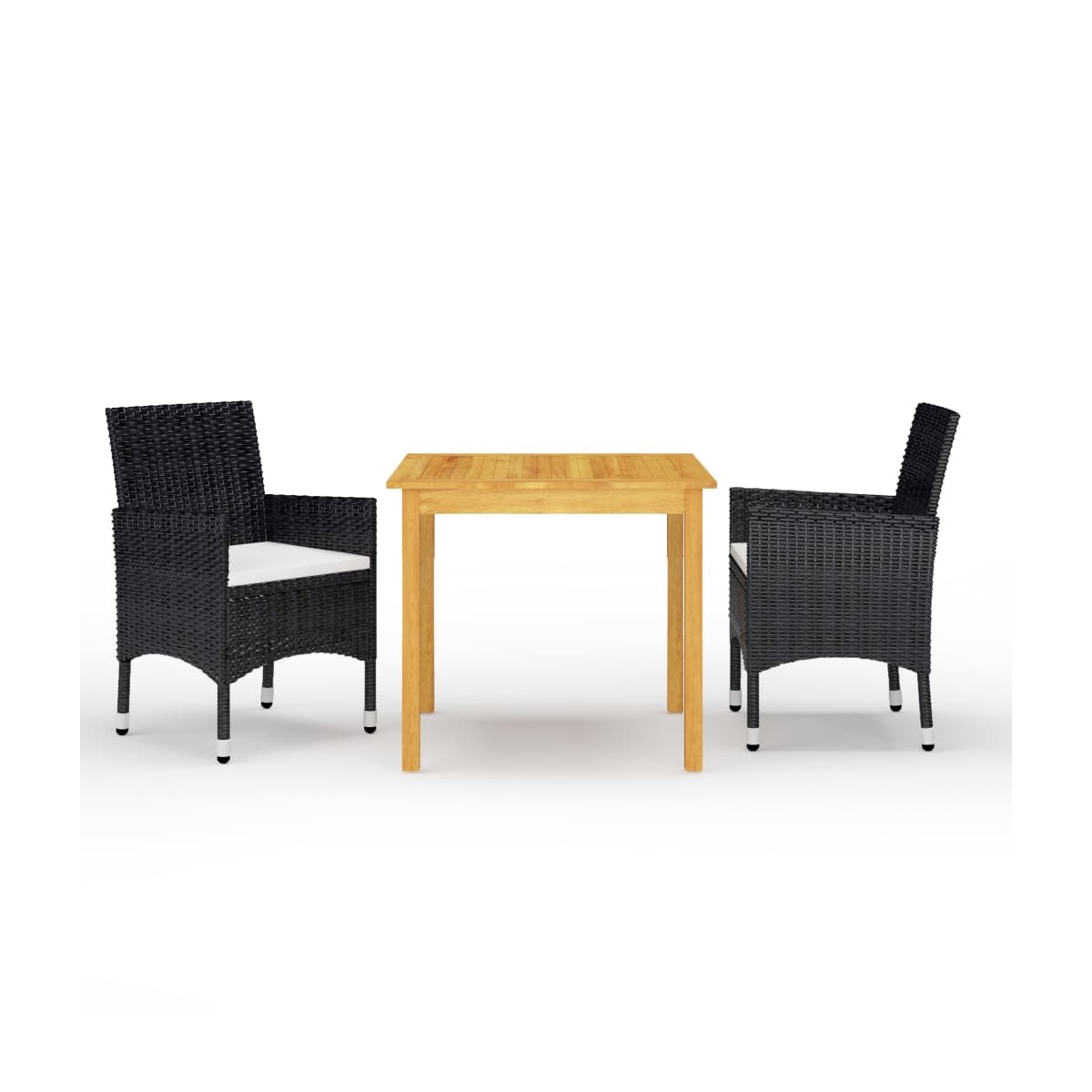 Este juego de comedor de jardín, con un diseño elegante y contemporáneo, será una excelente opción para cenar o relajarse en el jardín. Material de primera calidad: La madera maciza de acacia es un bonito material natural. La madera de acacia es una madera dura tropical, densa, robusta y duradera.Sillas de alta calidad: Robusta estructura de acero envuelto con ratán PE tejido a mano resistente a la intemperie, estos sillones de jardín son adecuados para uso en exteriores.Diseño cómodo: Diseñadas con respaldo y reposabrazos curvos, estas sillas de ratán brindan la máxima comodidad.Comodidad extra: Los cojines de asiento incluidos ofrecen mayor soporte mientras se estás sentado. Nota:Para prolongar la vida de tus muebles de exterior, te recomendamos que los protejas con una funda impermeable.