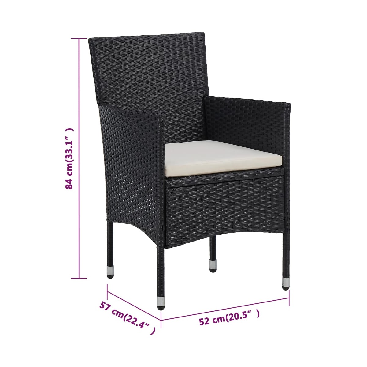 - Dimensiones de la silla: 52 x 57 x 84 cm (ancho x profundo x alto)