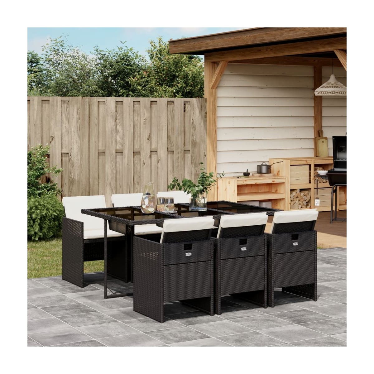 Este juego de comedor de jardín es una gran elección para comer al aire libre o simplemente para relajarte en el jardín, el patio o la terraza. Material duradero: El ratán PE, también conocido como ratán sintético, es un material sintético resistente y de bajo mantenimiento que se parece al ratán natural. Es ligero, fácil de limpiar y se usa comúnmente para muebles de exterior debido a su durabilidad y propiedades resistentes a la intemperie.Almacenamiento compacto: Estas sillas tienen un respaldo abatible que facilita su almacenamiento debajo de la mesa. Una vez plegadas, encajan perfectamente debajo de la mesa, formando un cubo que ahorra espacio. Experiencia de asiento cómoda: Estos muebles de exterior, completos con cojines acolchados gruesos, ofrecen una experiencia de asiento cómoda.Funda desenfundable y lavable: Estos cojines de asiento cuentan con fundas desenfundables para facilitar el lavado y mantenimiento.Superficie de vidrio: La superficie de la mesa de exterior es de vidrio templado resistente y duradero, por lo que es fácil de limpiar con un paño húmedo y añade un toque de elegancia a tu espacio exterior. Información útil: Para asegurarte de que tus muebles de exterior se mantengan hermosos, recomendamos protegerlos con una funda impermeable.