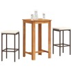 Este juego de mesa y taburetes altos para jardín, con un diseño elegante y moderno, será una excelente opción para comer o relajarse en el jardín. Material duradero: El ratán PE, también conocido como ratán sintético, es un material sintético resistente y de bajo mantenimiento que se parece al ratán natural. Es ligero, fácil de limpiar y se usa comúnmente para muebles de exterior debido a su durabilidad y propiedades resistentes a la intemperie. Hechos de ratán PE ligero, estos taburetes de bar son resistentes y fáciles de mover. Superficie robusta: La madera maciza de acacia es un hermoso material natural. La madera de acacia es una madera dura tropical, densa, robusta y duradera. Hecha de madera maciza de acacia, esta mesa de bar es robusta y estable. Puedes colocar tus aperitivos, bebidas y cualquiera de tus adornos favoritos. Experiencia de asiento cómoda: Los cojines del asiento con acolchado grueso y los reposapiés incorporados aportan comodidad adicional al taburete. Funda desenfundable y lavable: Estos cojines de asiento cuentan con fundas desenfundables para facilitar el lavado y mantenimiento. Información útil:Para asegurarte de que tus muebles de exterior se mantengan hermosos, recomendamos protegerlos con una funda impermeable.