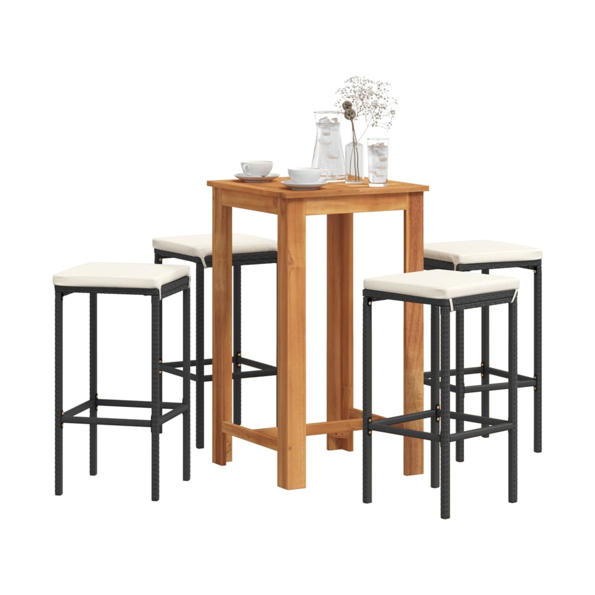 Este juego de mesa y taburetes altos para jardín, con un diseño elegante y moderno, será una excelente opción para comer o relajarse en el jardín. Material duradero: El ratán PE, también conocido como ratán sintético, es un material sintético resistente y de bajo mantenimiento que se parece al ratán natural. Es ligero, fácil de limpiar y se usa comúnmente para muebles de exterior debido a su durabilidad y propiedades resistentes a la intemperie. Hechos de ratán PE ligero, estos taburetes de bar son resistentes y fáciles de mover. Superficie robusta: La madera maciza de acacia es un hermoso material natural. La madera de acacia es una madera dura tropical, densa, robusta y duradera. Hecha de madera maciza de acacia, esta mesa de bar es robusta y estable. Puedes colocar tus aperitivos, bebidas y cualquiera de tus adornos favoritos. Experiencia de asiento cómoda: Los cojines del asiento con acolchado grueso y los reposapiés incorporados aportan comodidad adicional al taburete. Funda desenfundable y lavable: Estos cojines de asiento cuentan con fundas desenfundables para facilitar el lavado y mantenimiento. Información útil:Para asegurarte de que tus muebles de exterior se mantengan hermosos, recomendamos protegerlos con una funda impermeable.