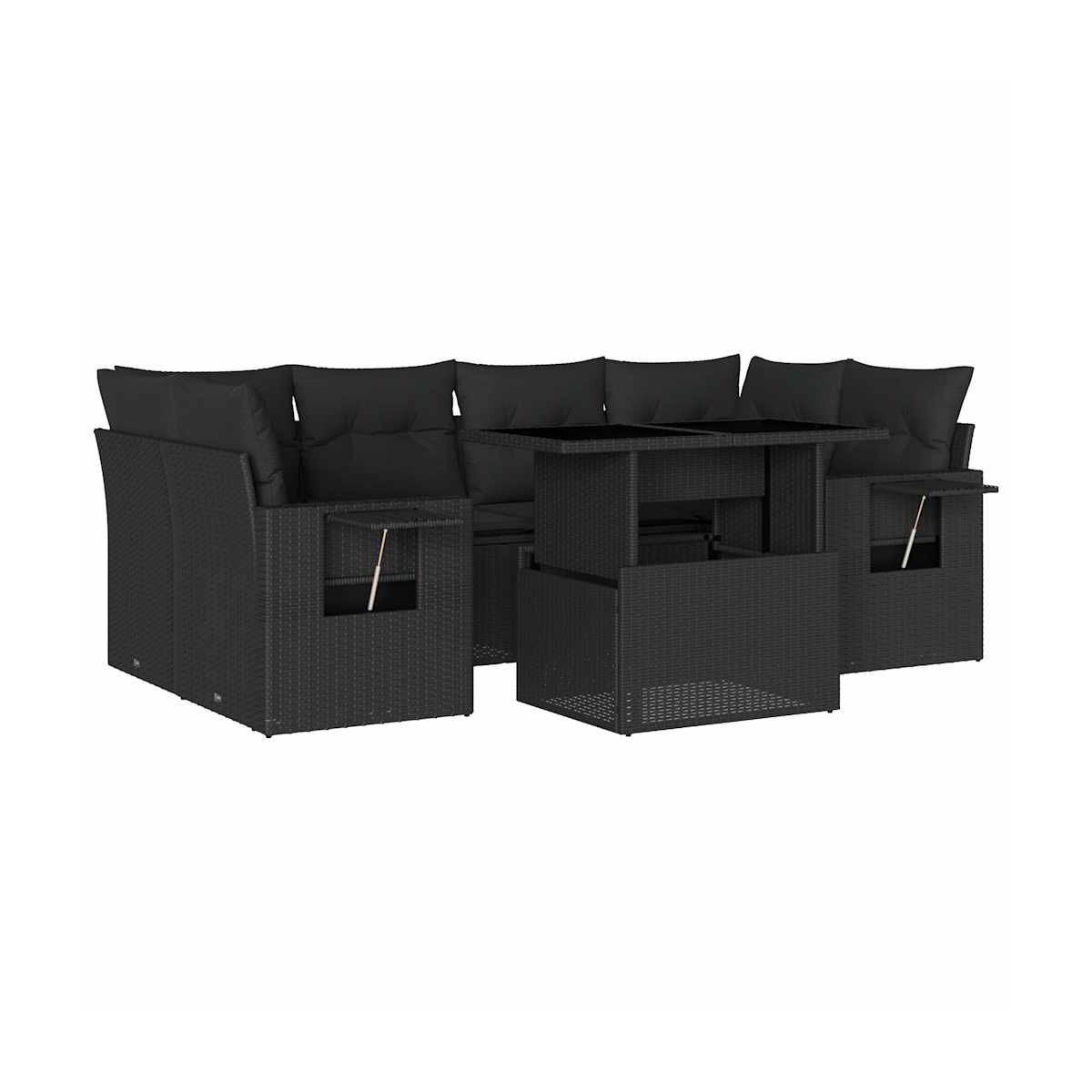 Este conjunto de sofás de jardín es el complemento perfecto para el jardín, terraza o patio, ya que proporciona un espacio confortable y acogedor para charlar con familiares y amigos o simplemente relajarte y disfrutar del aire libre. Material duradero: El ratán PE, también conocido como ratán sintético, es un material sintético resistente y de bajo mantenimiento que se parece al ratán natural. Es ligero, fácil de limpiar y se usa comúnmente para muebles de exterior debido a su durabilidad y propiedades resistentes a la intemperie.Tablero ajustable: El tablero de la mesa se puede levantar para que la mesa sea más alta, lo que transforma la mesa al aire libre de una mesa de café a una mesa de comedor. Es perfecto para invitar a invitados o comer al aire libre.Práctica mesa auxiliar: Este mueble de exterior cuenta con una mesa auxiliar plegable con un resorte de gas en los reposabrazos, lo que proporciona un lugar conveniente para mantener tus elementos esenciales al alcance de la mano. Experiencia de asiento cómoda: Estos muebles de exterior, completos con cojines acolchados gruesos, ofrecen una experiencia de asiento cómoda.Diseño modular: Este conjunto de muebles de exterior tiene un diseño modular, por lo que es completamente flexible y fácil de mover, para que puedas crear una disposición de muebles de exterior personalizada. Información útil:Para asegurarte de que tus muebles de exterior se mantengan hermosos, recomendamos protegerlos con una funda impermeable.