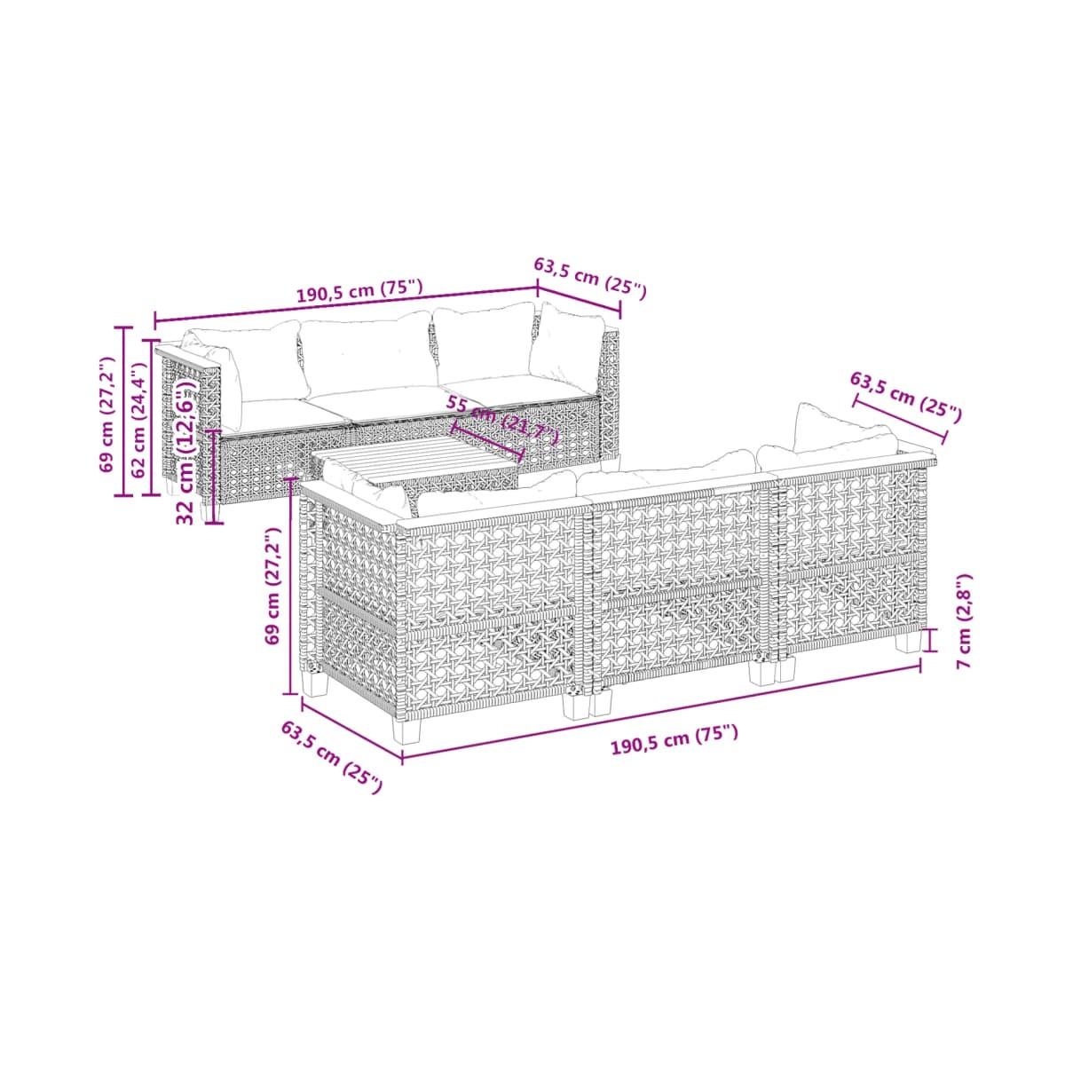 Este conjunto de sofás de jardín es el complemento perfecto para el jardín, terraza o patio, ya que proporciona un espacio confortable y acogedor para charlar con familiares y amigos o simplemente relajarte y disfrutar del aire libre. Material duradero: El ratán PE, también conocido como ratán sintético, es un material sintético resistente y de bajo mantenimiento que se parece al ratán natural. Es ligero, fácil de limpiar y se usa comúnmente para muebles de exterior debido a su durabilidad y propiedades resistentes a la intemperie.Experiencia de asiento cómoda: Estos muebles de exterior, completos con cojines acolchados gruesos, ofrecen una experiencia de asiento cómoda.Funda desenfundable y lavable: Estos cojines de asiento cuentan con fundas desenfundables para facilitar el lavado y mantenimiento.Superficie estable y fácil de limpiar: Esta mesa de jardín tiene una superficie de madera de acacia que es resistente, duradero y fácil de limpiar con un paño húmedo.Diseño modular: Este conjunto de muebles de exterior tiene un diseño modular, por lo que es completamente flexible y fácil de mover, para que puedas crear una disposición de muebles de exterior personalizada. Información útil:Para asegurarte de que tus muebles de exterior se mantengan hermosos, recomendamos protegerlos con una funda impermeable.