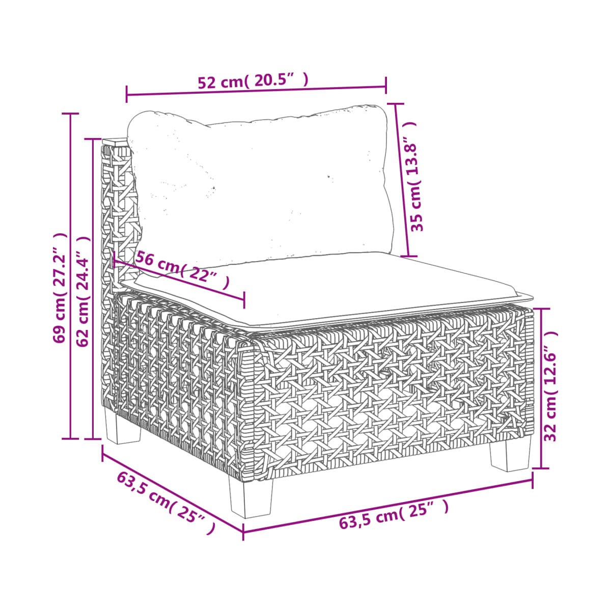 - Dimensiones del cojín del asiento (centro): 63,5 x 56,5 x 3 cm (ancho x profundo x grosor)