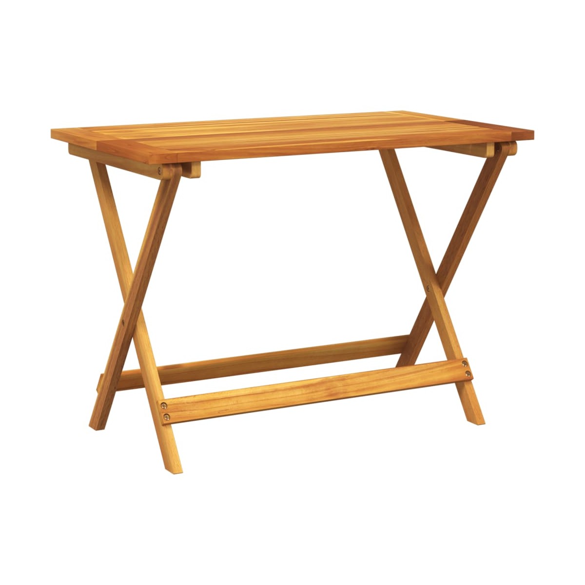 ¡Disfruta de tu tiempo libre con la familia y los amigos alrededor de este juego de muebles de jardín de madera! Material de primera calidad: La madera maciza de acacia es un bonito material natural. La madera de acacia es una madera dura tropical, densa, robusta y duradera.Diseño plegable: El juego de exterior se puede plegar para moverla y transportarlo fácilmente. Puedes guardarlo ocupando menos espacio cuando no lo uses.Superficie estable: La superficie estable de la mesa de comedor es ideal para colocar tu bebida o cualquier otra necesidad que necesites a mano.Experiencia de asiento cómoda: Con respaldo, la silla de exterior brinda la máxima comodidad.Superficie fácil de limpiar: La superficie con acabado de aceite hace que esta mesa plegable sea fácil de limpiar con un paño húmedo.Muchos usos: El juego tiene un diseño atemporal y se adapta a casi cualquier decoración. Puedes colocarlo en casa o en cualquier patio comercial, jardín, balcón, etc. Información útil:Para asegurarte de que tus muebles de exterior se mantengan hermosos, recomendamos protegerlos con una funda impermeable.