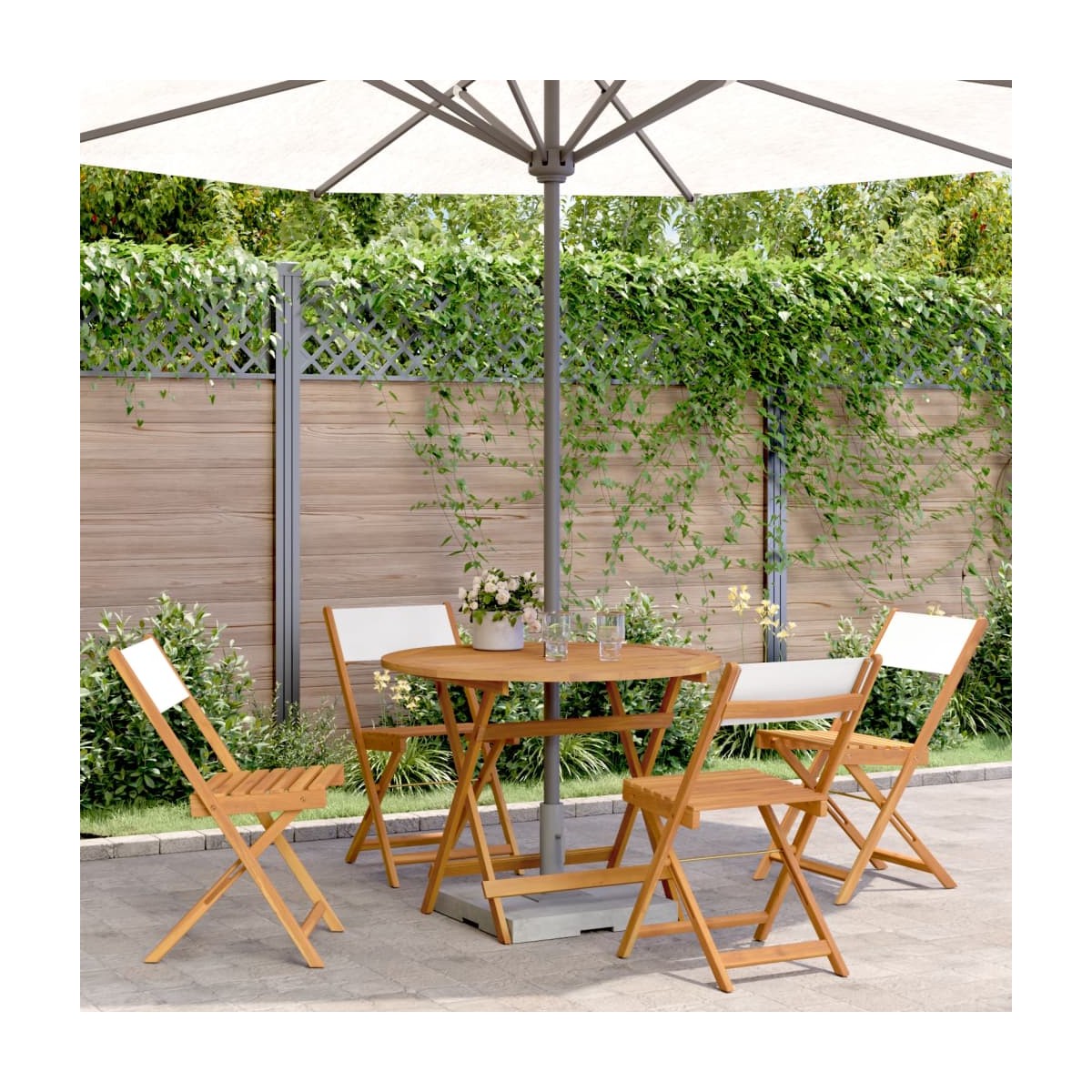 Este juego de comedor de jardín es una gran elección para comer al aire libre o simplemente para relajarte en el jardín, el patio o la terraza. Robusta y estable: La madera maciza de acacia es conocida por su resistencia y durabilidad. Sus diversos colores y patrones de vetas únicos le dan una apariencia atractiva. Con buena estabilidad y resistencia a la intemperie, es ideal para fabricar muebles de interior y exterior.Diseño práctico: La silla de exterior elimina el diseño de reposabrazos y sólo viene con respaldo, lo que te permite tener más libertad de movimiento sin dejar de disfrutar de una experiencia cómoda.Superficie estable: La mesa de exterior ofrece un soporte excelente para bebidas, aperitivos, fruteros y tus adornos favoritos.Diseño plegable: La mesa y las sillas de comedor al aire libre se pueden plegar fácilmente cuando no se utilicen y para facilitar su almacenamiento y transporte. Información útil:Para asegurarte de que tus muebles de exterior se mantengan hermosos, recomendamos protegerlos con una funda impermeable.