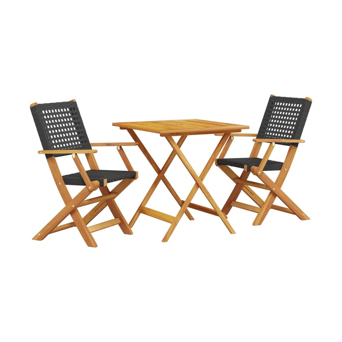 ¡Disfruta de una taza de café o charla con tu familia y amigos en el jardín, el patio o en el balcón con este juego de bistró! Robusta y estable: La madera maciza de acacia es conocida por su resistencia y durabilidad. Sus diversos colores y patrones de vetas únicos le dan una apariencia atractiva. Con buena estabilidad y resistencia a la intemperie, es ideal para fabricar muebles de interior y exterior.Material duradero: El ratán PE, también conocido como ratán sintético, es un material sintético resistente y de bajo mantenimiento que se parece al ratán natural. Es ligero, fácil de limpiar y se usa comúnmente para muebles de exterior debido a su durabilidad y propiedades resistentes a la intemperie.Diseño práctico: El práctico y plano reposabrazos de madera te permite apoyar tus manos en ella mientras disfrutas de tu tiempo al aire libre.Superficie estable: La mesa de exterior ofrece un soporte excelente para bebidas, aperitivos, fruteros y tus adornos favoritos.Diseño plegable: La mesa y las sillas de comedor al aire libre se pueden plegar fácilmente cuando no se utilicen y para facilitar su almacenamiento y transporte. Información útil:Para asegurarte de que tus muebles de exterior se mantengan hermosos, recomendamos protegerlos con una funda impermeable.