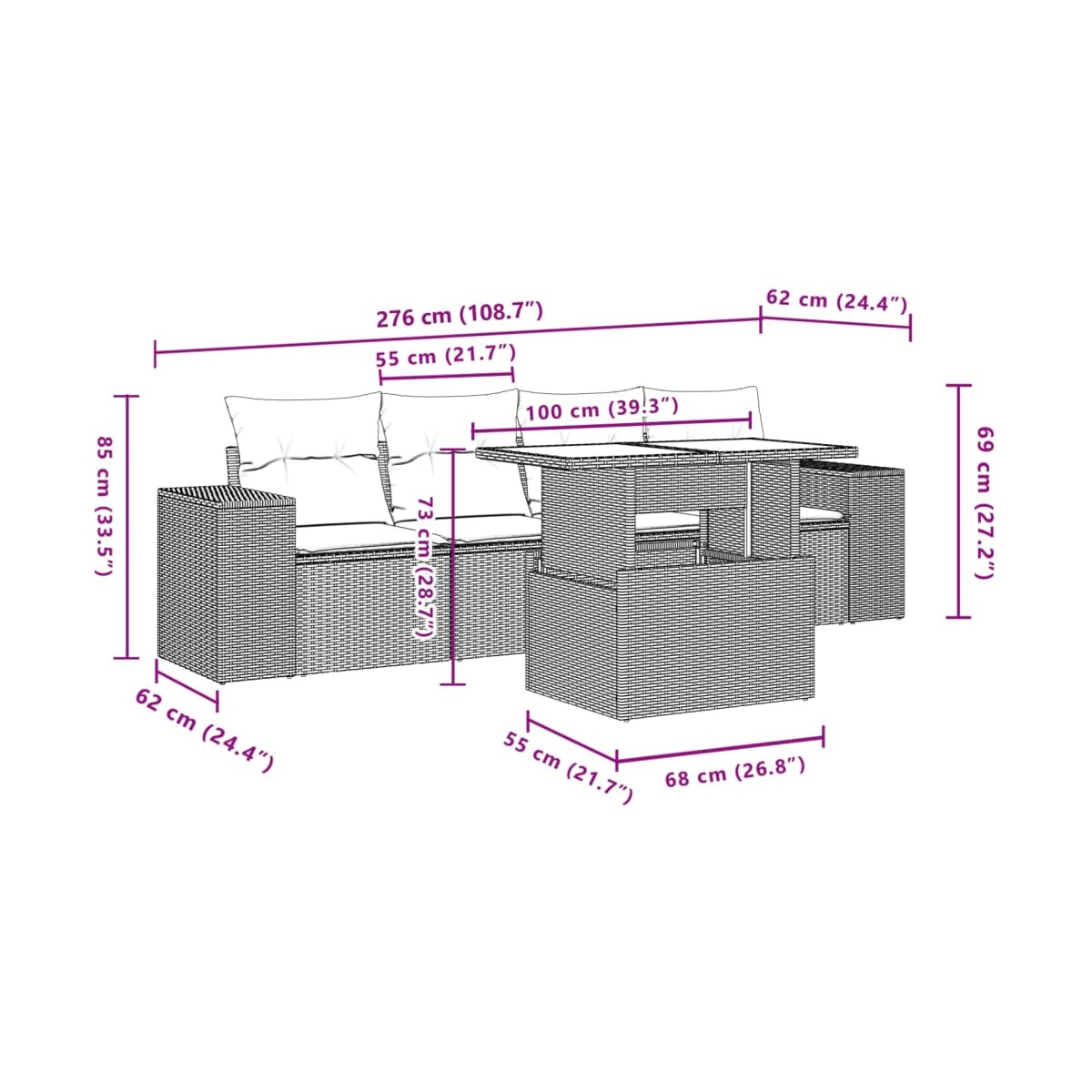 Este conjunto de sofás de jardín es el complemento perfecto para el jardín, terraza o patio, ya que proporciona un espacio confortable y acogedor para charlar con familiares y amigos o simplemente relajarte y disfrutar del aire libre. Material duradero: El ratán PE, también conocido como ratán sintético, es un material sintético resistente y de bajo mantenimiento que se parece al ratán natural. Es ligero, fácil de limpiar y se usa comúnmente para muebles de exterior debido a su durabilidad y propiedades resistentes a la intemperie.Tablero ajustable: El tablero de la mesa se puede levantar para que la mesa sea más alta, lo que transforma la mesa al aire libre de una mesa de café a una mesa de comedor. Es perfecto para invitar a invitados o comer al aire libre.Experiencia de asiento cómoda: Estos muebles de exterior, completos con cojines acolchados gruesos, ofrecen una experiencia de asiento cómoda.Funda desenfundable y lavable: Estos cojines de asiento cuentan con fundas desenfundables para facilitar el lavado y mantenimiento.Diseño modular: Este conjunto de muebles de exterior tiene un diseño modular, por lo que es completamente flexible y fácil de mover, para que puedas crear una disposición de muebles de exterior personalizada. Información útil:Para asegurarte de que tus muebles de exterior se mantengan hermosos, recomendamos protegerlos con una funda impermeable.