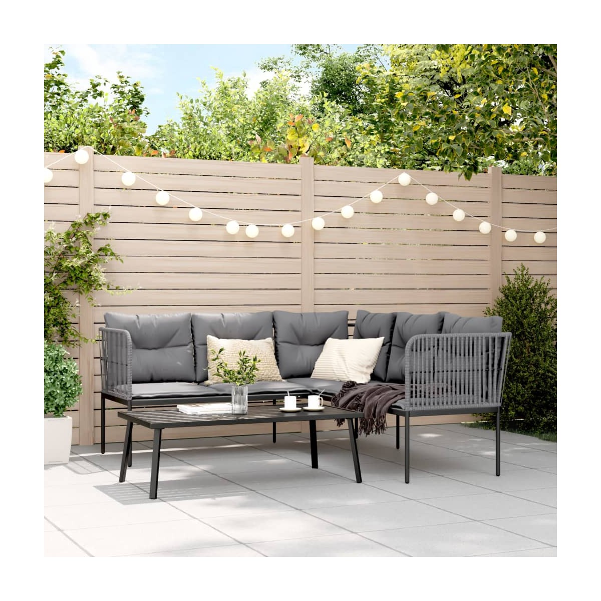 Este conjunto de sofás de jardín es el complemento perfecto para el jardín, terraza o patio, ya que proporciona un espacio confortable y acogedor para charlar con familiares y amigos o simplemente relajarte y disfrutar del aire libre. Estructura robusta y estable: La estructura de acero con recubrimiento en polvo garantiza que el mueble de jardín sea resistente y estable para usarlo a diario al aire libre.Duradero: El tejido textileno es apreciado por su durabilidad, resistencia al agua y a la decoloración, fácil mantenimiento y protección contra los rayos UV y el moho, lo que lo convierte en una opción ideal para muebles de exterior y estructuras de con toldo.Experiencia de asiento cómoda: Estos muebles de exterior, completos con cojines acolchados gruesos, ofrecen una experiencia de asiento cómoda.Funda desenfundable y lavable: Estos cojines de asiento cuentan con fundas desenfundables para facilitar el lavado y mantenimiento.Superficie resistente: La resistente superficie de la mesa de patio es ideal para dejar las bebidas o cualquier otra cosa que necesites tener al alcance de la mano. Información útil:Para asegurarte de que tus muebles de exterior se mantengan hermosos, recomendamos protegerlos con una funda impermeable.