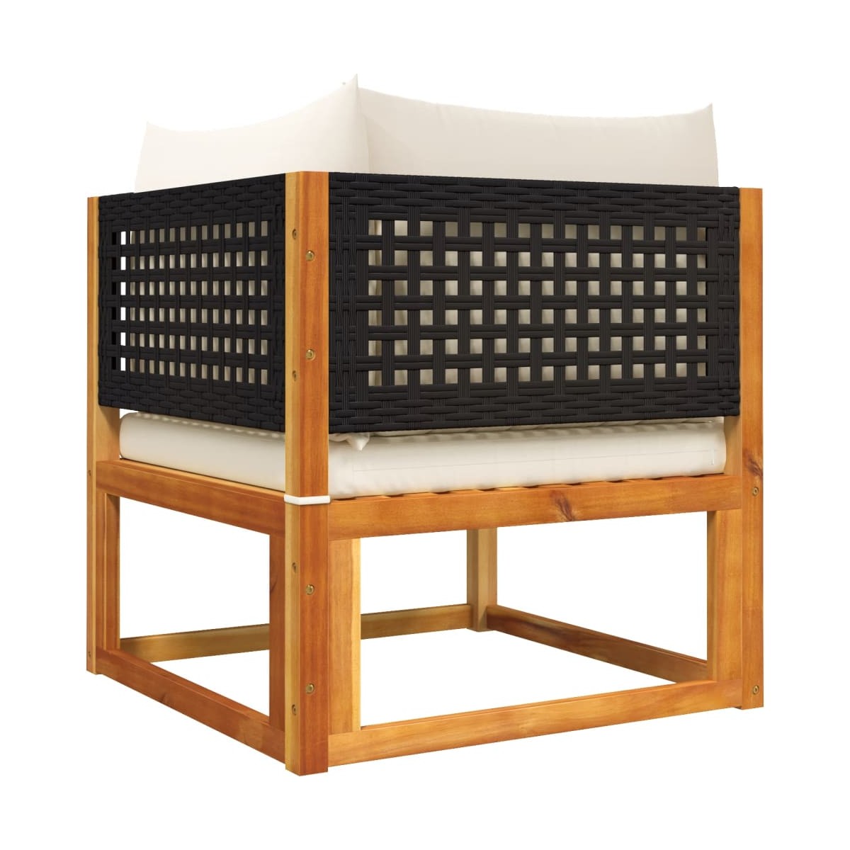 - Material: Madera maciza de acacia con acabado al aceite, ratán PE