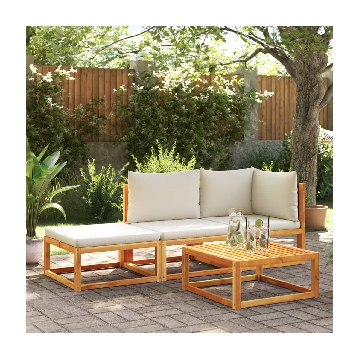 Este conjunto de sofás de jardín es el complemento perfecto para el jardín, terraza o patio, ya que proporciona un espacio confortable y acogedor para charlar con familiares y amigos o simplemente relajarte y disfrutar del aire libre. Estructura robusta y estable: La madera maciza de acacia es conocida por su resistencia y durabilidad. Sus diversos colores y patrones de vetas únicos le dan una apariencia atractiva. Con buena estabilidad y resistencia a la intemperie, es ideal para fabricar muebles de interior y exterior. Experiencia de asiento cómoda: Estos muebles de exterior, completos con cojines acolchados gruesos, ofrecen una experiencia de asiento cómoda.Bien ventilado y prevención de la acumulación de agua: El diseño de listones promueve un flujo de aire óptimo y evita eficazmente la acumulación de agua, lo que garantiza un mobiliario de jardín seco y cómodo.Funda desenfundable y lavable: Estos cojines de asiento cuentan con fundas desenfundables para facilitar el lavado y mantenimiento.Diseño modular: Estos muebles de exterior tienen un diseño modular, por lo que son completamente flexible y fácil de mover, para que puedas crear una disposición de muebles de exterior personalizada. Información útil:Para asegurarte de que tus muebles de exterior se mantengan hermosos, recomendamos protegerlos con una funda impermeable.