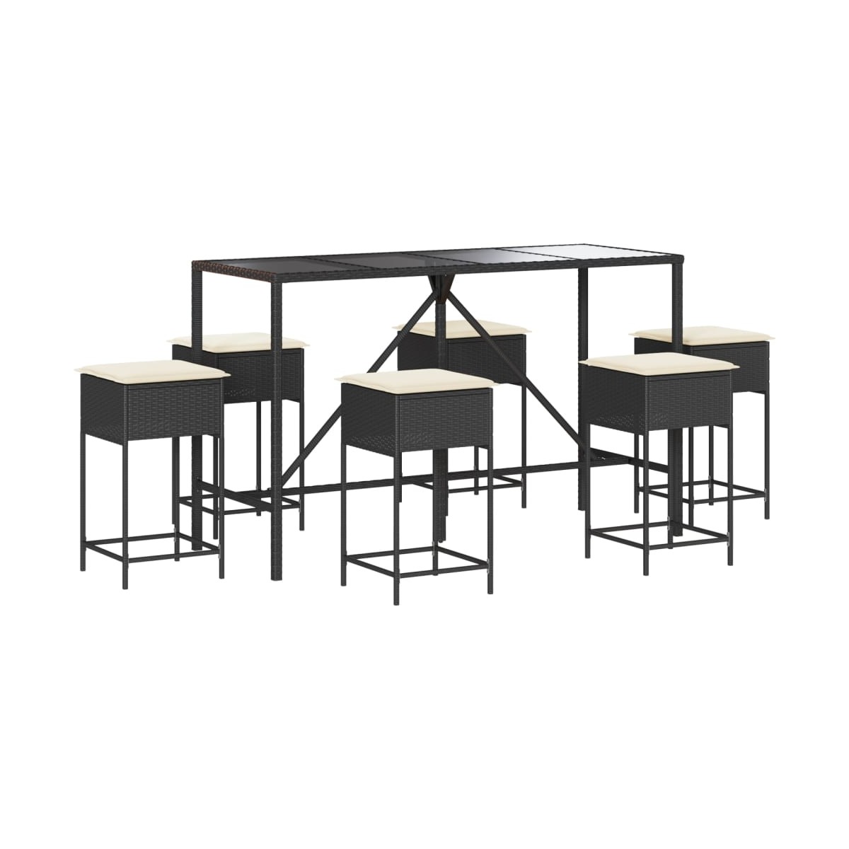 - Material: Ratán sintético, acero con recubrimiento en polvo, vidrio templado
