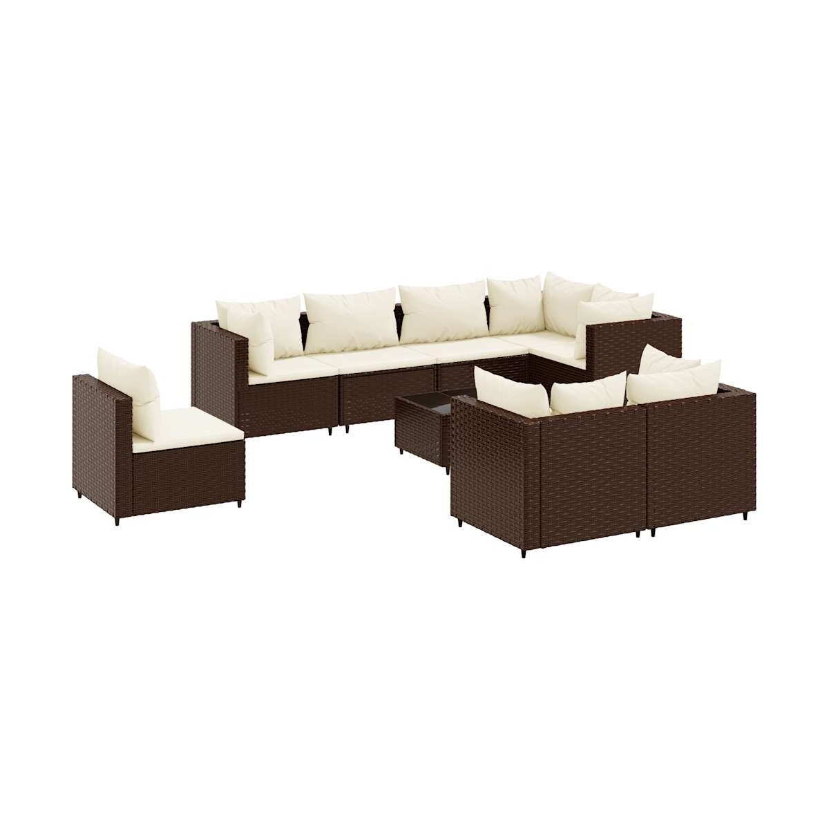 Este conjunto de sofás de jardín es el complemento perfecto para el jardín, terraza o patio, ya que proporciona un espacio confortable y acogedor para charlar con familiares y amigos o simplemente relajarte y disfrutar del aire libre. Material duradero: El ratán sintético, también conocido como ratán sintético, es un material sintético resistente y de bajo mantenimiento que se parece al ratán natural. Es ligero, fácil de limpiar y se usa comúnmente para muebles de exterior debido a su durabilidad y propiedades resistentes a la intemperie.Estructura robusta y estable: La estructura de acero con recubrimiento en polvo es fuerte, estable, duradero y resistente a la corrosión y a las inclemencias del tiempo, lo que garantiza un rendimiento duradero.Superficie de vidrio: La superficie de la mesa de exterior es de vidrio templado resistente y duradero, por lo que es fácil de limpiar con un paño húmedo y añade un toque de elegancia a tu espacio exterior.Diseño modular: Este conjunto de muebles de exterior tiene un diseño modular, por lo que es completamente flexible y fácil de mover, para que puedas crear una disposición de muebles de exterior personalizada.Experiencia de asiento cómoda: Estos muebles de exterior, completos con cojines acolchados gruesos, ofrecen una experiencia de asiento cómoda. Información útil:Para asegurarte de que tus muebles de exterior se mantengan hermosos, recomendamos protegerlos con una funda impermeable.