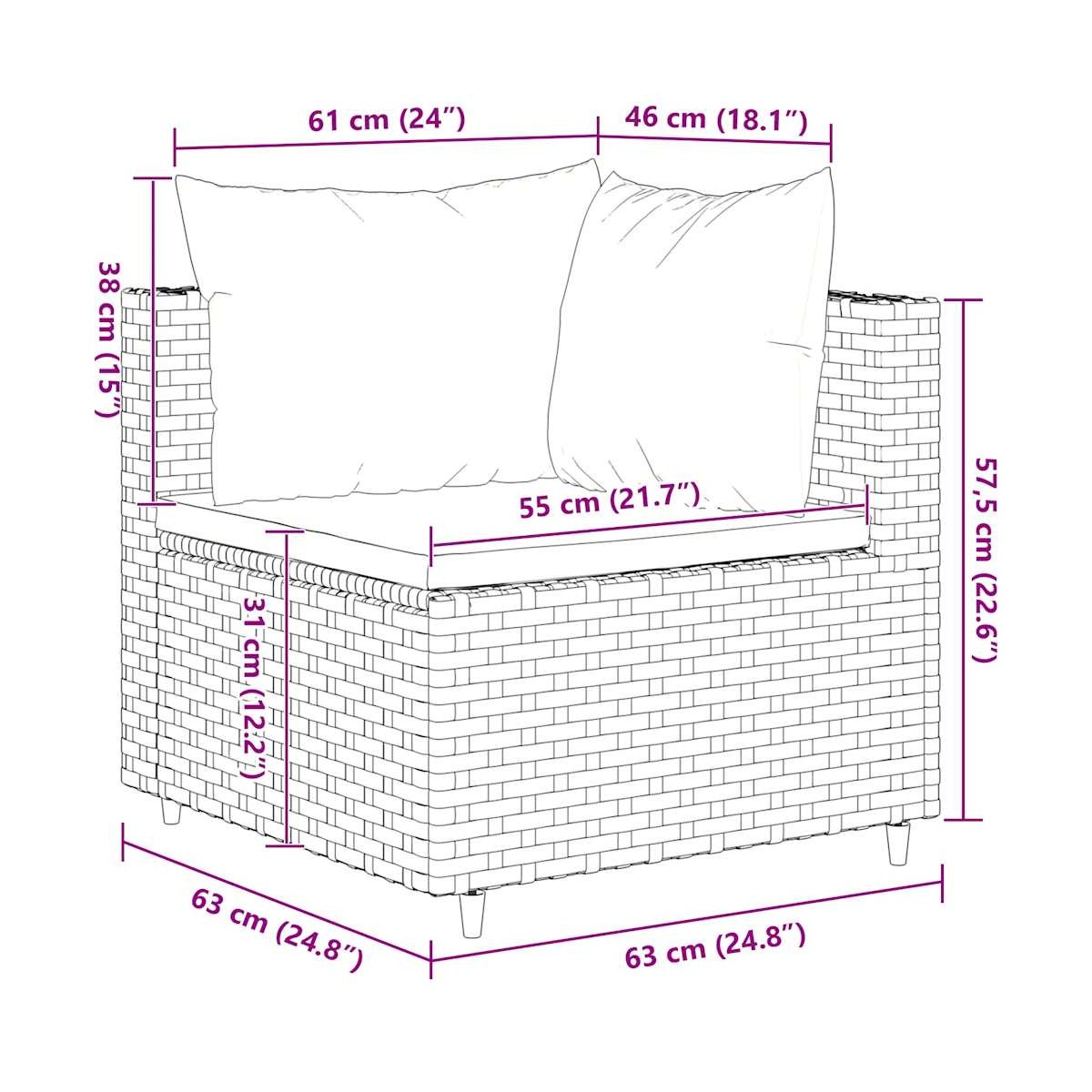 Este conjunto de sofás de jardín es el complemento perfecto para el jardín, terraza o patio, ya que proporciona un espacio confortable y acogedor para charlar con familiares y amigos o simplemente relajarte y disfrutar del aire libre. Material duradero: El ratán sintético, también conocido como ratán sintético, es un material sintético resistente y de bajo mantenimiento que se parece al ratán natural. Es ligero, fácil de limpiar y se usa comúnmente para muebles de exterior debido a su durabilidad y propiedades resistentes a la intemperie.Estructura robusta y estable: La estructura de acero con recubrimiento en polvo es fuerte, estable, duradero y resistente a la corrosión y a las inclemencias del tiempo, lo que garantiza un rendimiento duradero.Diseño modular: Este conjunto de muebles de exterior tiene un diseño modular, por lo que es completamente flexible y fácil de mover, para que puedas crear una disposición de muebles de exterior personalizada.Experiencia de asiento cómoda: Estos muebles de exterior, completos con cojines acolchados gruesos, ofrecen una experiencia de asiento cómoda. Información útil:Para asegurarte de que tus muebles de exterior se mantengan hermosos, recomendamos protegerlos con una funda impermeable.