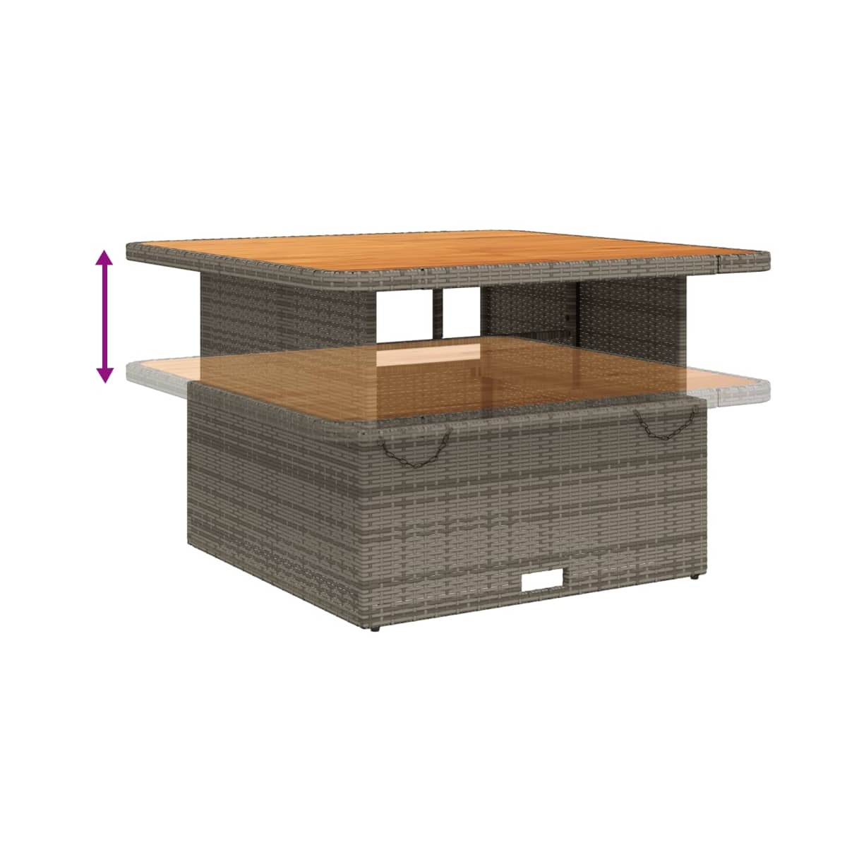 Este conjunto de sofás de jardín es el complemento perfecto para el jardín, terraza o patio, ya que proporciona un espacio confortable y acogedor para charlar con familiares y amigos o simplemente relajarte y disfrutar del aire libre. Material duradero: El ratán sintético, también conocido como ratán sintético, es un material sintético resistente y de bajo mantenimiento que se parece al ratán natural. Es ligero, fácil de limpiar y se usa comúnmente para muebles de exterior debido a su durabilidad y propiedades resistentes a la intemperie.Experiencia de asiento cómoda: Estos muebles de exterior, completos con cojines acolchados gruesos, ofrecen una experiencia de asiento cómoda.Funda desenfundable y lavable: Estos cojines de asiento cuentan con fundas desenfundables para facilitar el lavado y mantenimiento.Tablero ajustable: El tablero de la mesa se puede levantar para que la mesa sea más alta, lo que transforma la mesa al aire libre de una mesa de café a una mesa de comedor. Es perfecto para invitar a invitados o comer al aire libre.Superficie estable y fácil de limpiar: Esta mesa de jardín tiene una superficie de madera de acacia que es resistente, duradero y fácil de limpiar con un paño húmedo. Información útil:Para asegurarte de que tus muebles de exterior se mantengan hermosos, recomendamos protegerlos con una funda impermeable.