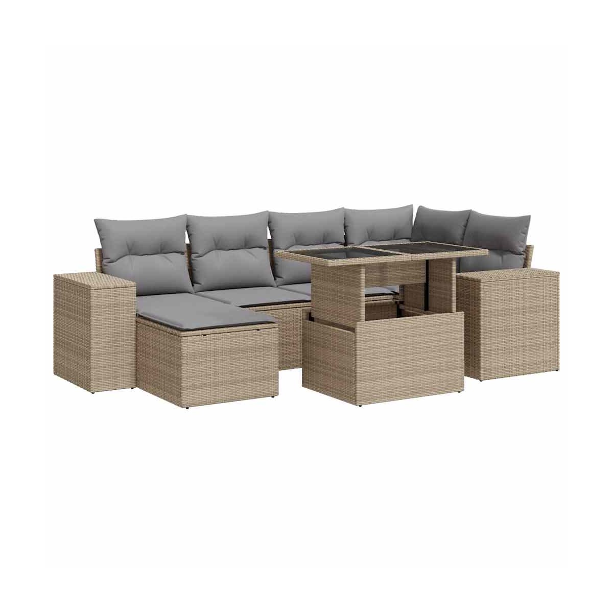 Este conjunto de sofás de jardín es el complemento perfecto para el jardín, terraza o patio, ya que proporciona un espacio confortable y acogedor para charlar con familiares y amigos o simplemente relajarte y disfrutar del aire libre. Material duradero: El ratán sintético, también conocido como ratán sintético, es un material sintético resistente y de bajo mantenimiento que se parece al ratán natural. Es ligero, fácil de limpiar y se usa comúnmente para muebles de exterior debido a su durabilidad y propiedades resistentes a la intemperie.Función de almacenamiento con bolsa resistente al agua: El mueble de jardín cuenta con espacio de almacenamiento debajo del asiento, completo con una bolsa resistente al agua para guardar cojines, juguetes y otros artículos. La bolsa interior se puede sujetar de forma segura a los muebles de exterior con cierres de gancho y bucle para mayor estabilidad.Tablero ajustable: El tablero de la mesa se puede levantar para que la mesa sea más alta, lo que transforma la mesa al aire libre de una mesa de café a una mesa de comedor. Es perfecto para invitar a invitados o comer al aire libre.Funda desenfundable y lavable: Estos cojines de asiento cuentan con fundas desenfundables para facilitar el lavado y mantenimiento.Diseño modular: Este conjunto de muebles de exterior tiene un diseño modular, por lo que es completamente flexible y fácil de mover, para que puedas crear una disposición de muebles de exterior personalizada. Información útil:Para asegurarte de que tus muebles de exterior se mantengan hermosos, recomendamos protegerlos con una funda impermeable.
