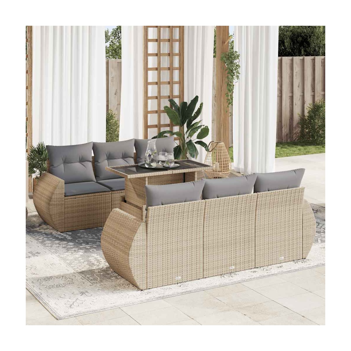 Este conjunto de sofás de jardín es el complemento perfecto para el jardín, terraza o patio, ya que proporciona un espacio confortable y acogedor para charlar con familiares y amigos o simplemente relajarte y disfrutar del aire libre. Material duradero: El ratán sintético, también conocido como ratán sintético, es un material sintético resistente y de bajo mantenimiento que se parece al ratán natural. Es ligero, fácil de limpiar y se usa comúnmente para muebles de exterior debido a su durabilidad y propiedades resistentes a la intemperie.Función de almacenamiento con bolsa resistente al agua: Cada asiento de jardín cuenta con un espacio de almacenamiento debajo del asiento, completo con una bolsa resistente al agua para guardar cojines, juguetes y otros artículos. La bolsa interior tiene una cubierta superior y se puede sujetar de forma segura al asiento con cierres de gancho y bucle para mayor estabilidad.Tablero ajustable: El tablero de la mesa se puede levantar para que la mesa sea más alta, lo que transforma la mesa al aire libre de una mesa de café a una mesa de comedor. Es perfecto para invitar a invitados o comer al aire libre.Funda desenfundable y lavable: Estos cojines de asiento cuentan con fundas desenfundables para facilitar el lavado y mantenimiento.Estructura robusta y estable: La estructura de acero con recubrimiento en polvo es fuerte, estable, duradero y resistente a la corrosión y a las inclemencias del tiempo, lo que garantiza un rendimiento duradero. Información útil:Para asegurarte de que tus muebles de exterior se mantengan hermosos, recomendamos protegerlos con una funda impermeable.