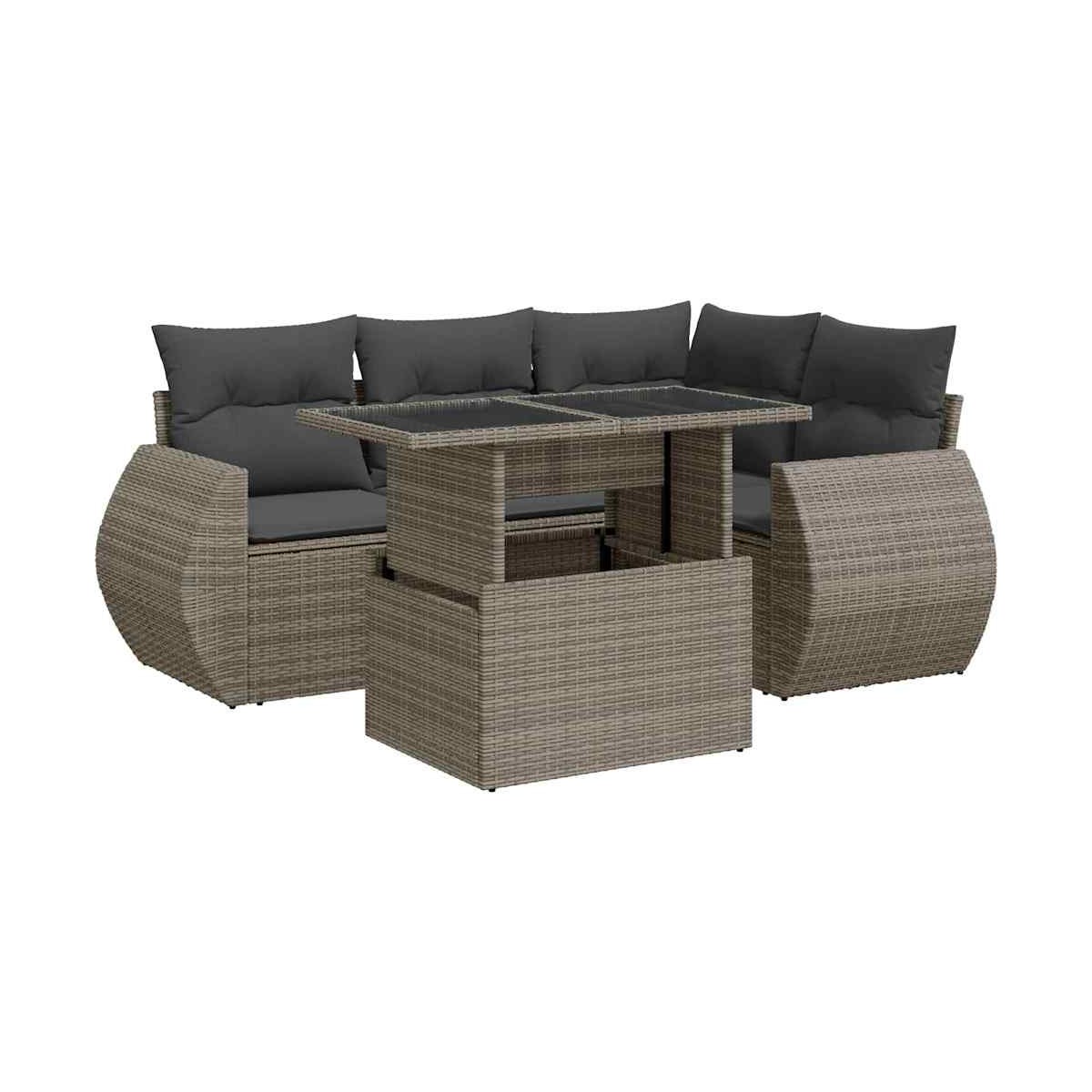 Este conjunto de sofás de jardín es el complemento perfecto para el jardín, terraza o patio, ya que proporciona un espacio confortable y acogedor para charlar con familiares y amigos o simplemente relajarte y disfrutar del aire libre. Material duradero: El ratán sintético, también conocido como ratán sintético, es un material sintético resistente y de bajo mantenimiento que se parece al ratán natural. Es ligero, fácil de limpiar y se usa comúnmente para muebles de exterior debido a su durabilidad y propiedades resistentes a la intemperie.Función de almacenamiento con bolsa resistente al agua: Cada asiento de jardín cuenta con un espacio de almacenamiento debajo del asiento, completo con una bolsa resistente al agua para guardar cojines, juguetes y otros artículos. La bolsa interior tiene una cubierta superior y se puede sujetar de forma segura al asiento con cierres de gancho y bucle para mayor estabilidad.Tablero ajustable: El tablero de la mesa se puede levantar para que la mesa sea más alta, lo que transforma la mesa al aire libre de una mesa de café a una mesa de comedor. Es perfecto para invitar a invitados o comer al aire libre.Funda desenfundable y lavable: Estos cojines de asiento cuentan con fundas desenfundables para facilitar el lavado y mantenimiento.Estructura robusta y estable: La estructura de acero con recubrimiento en polvo es fuerte, estable, duradero y resistente a la corrosión y a las inclemencias del tiempo, lo que garantiza un rendimiento duradero. Información útil:Para asegurarte de que tus muebles de exterior se mantengan hermosos, recomendamos protegerlos con una funda impermeable.