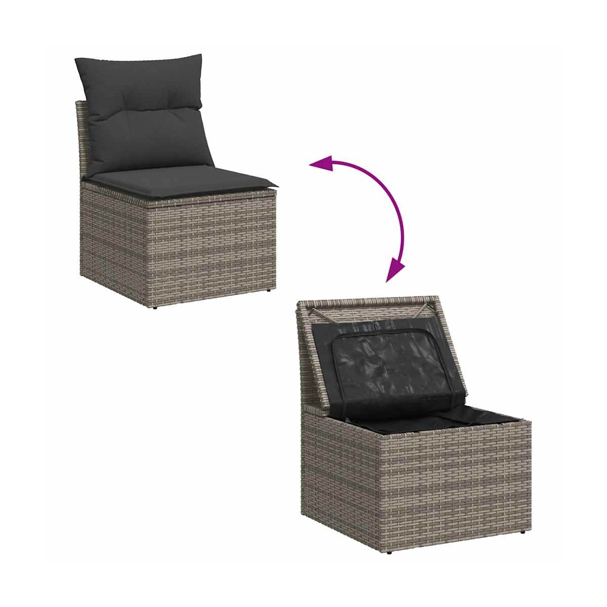 Este conjunto de sofás de jardín es el complemento perfecto para el jardín, terraza o patio, ya que proporciona un espacio confortable y acogedor para charlar con familiares y amigos o simplemente relajarte y disfrutar del aire libre. Material duradero: El ratán sintético, también conocido como ratán sintético, es un material sintético resistente y de bajo mantenimiento que se parece al ratán natural. Es ligero, fácil de limpiar y se usa comúnmente para muebles de exterior debido a su durabilidad y propiedades resistentes a la intemperie.Función de almacenamiento con bolsa resistente al agua: El mueble de jardín cuenta con espacio de almacenamiento debajo del asiento, completo con una bolsa resistente al agua para guardar cojines, juguetes y otros artículos. La bolsa interior se puede sujetar de forma segura a los muebles de exterior con cierres de gancho y bucle para mayor estabilidad.Tablero ajustable: El tablero de la mesa se puede levantar para que la mesa sea más alta, lo que transforma la mesa al aire libre de una mesa de café a una mesa de comedor. Es perfecto para invitar a invitados o comer al aire libre.Funda desenfundable y lavable: Estos cojines de asiento cuentan con fundas desenfundables para facilitar el lavado y mantenimiento.Diseño modular: Este conjunto de muebles de exterior tiene un diseño modular, por lo que es completamente flexible y fácil de mover, para que puedas crear una disposición de muebles de exterior personalizada. Información útil:Para asegurarte de que tus muebles de exterior se mantengan hermosos, recomendamos protegerlos con una funda impermeable.