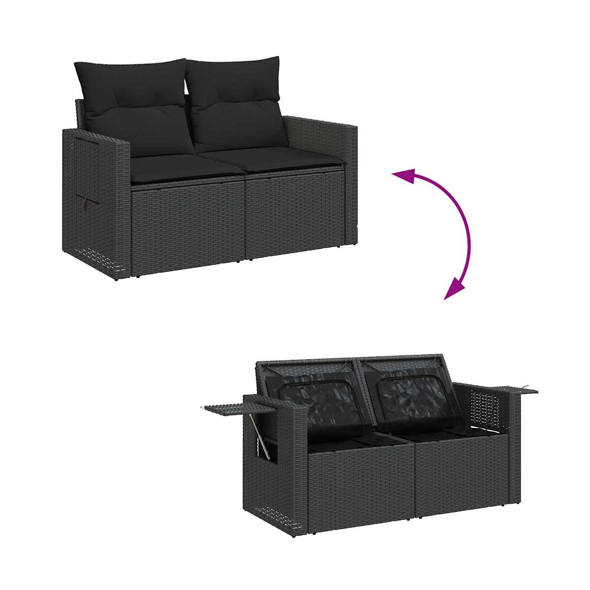 Este conjunto de sofás de jardín es el complemento perfecto para el jardín, terraza o patio, ya que proporciona un espacio confortable y acogedor para charlar con familiares y amigos o simplemente relajarte y disfrutar del aire libre.Material duradero: El ratán sintético, también conocido como ratán sintético, es un material sintético resistente y de bajo mantenimiento que se parece al ratán natural. Es ligero, fácil de limpiar y se usa comúnmente para muebles de exterior debido a su durabilidad y propiedades resistentes a la intemperie.Función de almacenamiento con bolsa resistente al agua: Cada asiento de jardín cuenta con un espacio de almacenamiento debajo del asiento, completo con una bolsa resistente al agua para guardar cojines, juguetes y otros artículos. Las bolsas interiores tienen una cubierta superior y se pueden sujetar de forma segura a los asientos con cierres de gancho y bucle para mayor estabilidad.Cómoda mesa auxiliar: Este mueble de exterior cuenta con una mesa auxiliar plegable con un muelle de gas, lo que proporciona un lugar práctico para mantener tus elementos esenciales al alcance de la mano.Funda desenfundable y lavable: Estos cojines de asiento cuentan con fundas desenfundables para facilitar el lavado y mantenimiento.Diseño modular: Este conjunto de muebles de exterior tiene un diseño modular, por lo que es completamente flexible y fácil de mover, para que puedas crear una disposición de muebles de exterior personalizada.Información útil:Para asegurarte de que tus muebles de exterior se mantengan hermosos, recomendamos protegerlos con una funda impermeable.