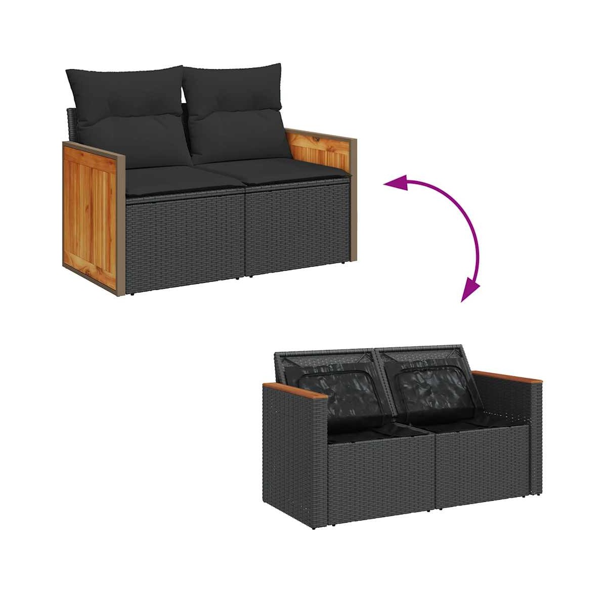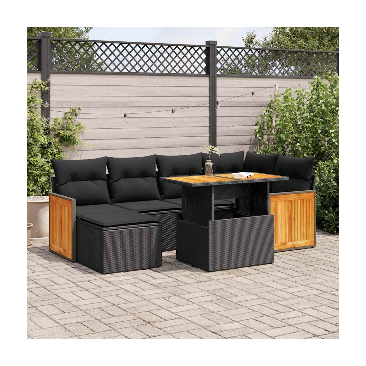 - Material: Ratán sintético, acero con recubrimiento en polvo, madera maciza de acacia con acabado de aceite