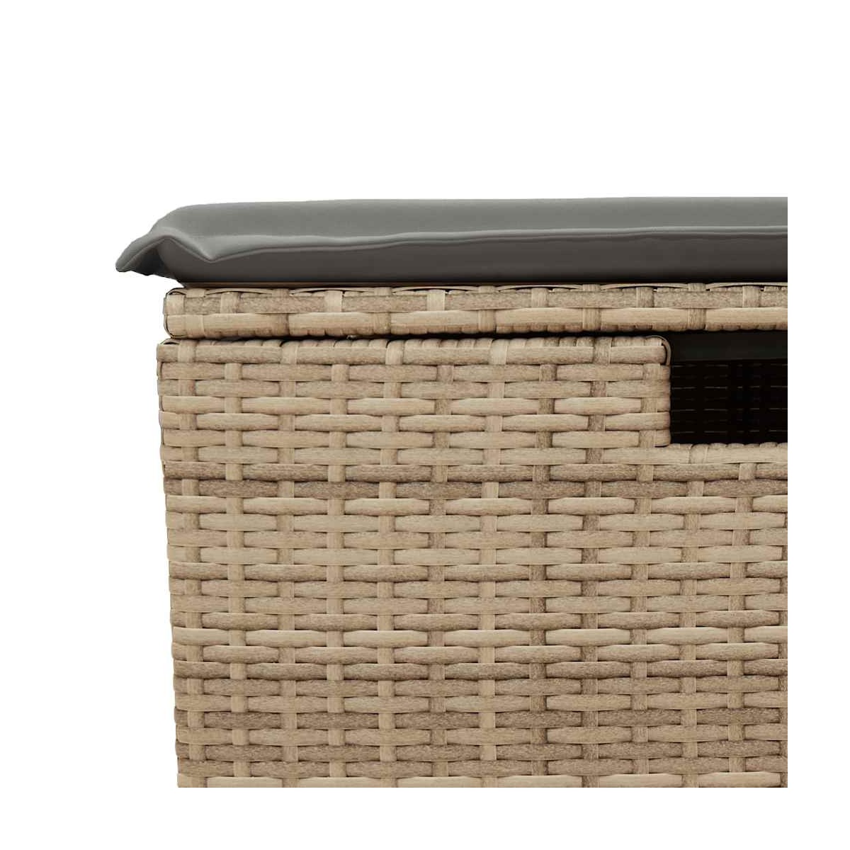 Este conjunto de sofás de jardín es el complemento perfecto para el jardín, terraza o patio, ya que proporciona un espacio confortable y acogedor para charlar con familiares y amigos o simplemente relajarte y disfrutar del aire libre. Material duradero: El ratán sintético, también conocido como ratán sintético, es un material sintético resistente y de bajo mantenimiento que se parece al ratán natural. Es ligero, fácil de limpiar y se usa comúnmente para muebles de exterior debido a su durabilidad y propiedades resistentes a la intemperie.Función de almacenamiento con bolsa resistente al agua: El mueble de jardín cuenta con espacio de almacenamiento debajo del asiento, completo con una bolsa resistente al agua para guardar cojines, juguetes y otros artículos. La bolsa interior se puede sujetar de forma segura a los muebles de exterior con cierres de gancho y bucle para mayor estabilidad.Reposapiés versátil: El taburete es versátil y sirve como un cómodo reposapiés para cuando descanses en el sofá o como asiento adicional en tu jardín.Funda desenfundable y lavable: Estos cojines de asiento cuentan con fundas desenfundables para facilitar el lavado y mantenimiento.Diseño modular: Este conjunto de muebles de exterior tiene un diseño modular, por lo que es completamente flexible y fácil de mover, para que puedas crear una disposición de muebles de exterior personalizada. Información útil:Para asegurarte de que tus muebles de exterior se mantengan hermosos, recomendamos protegerlos con una funda impermeable.