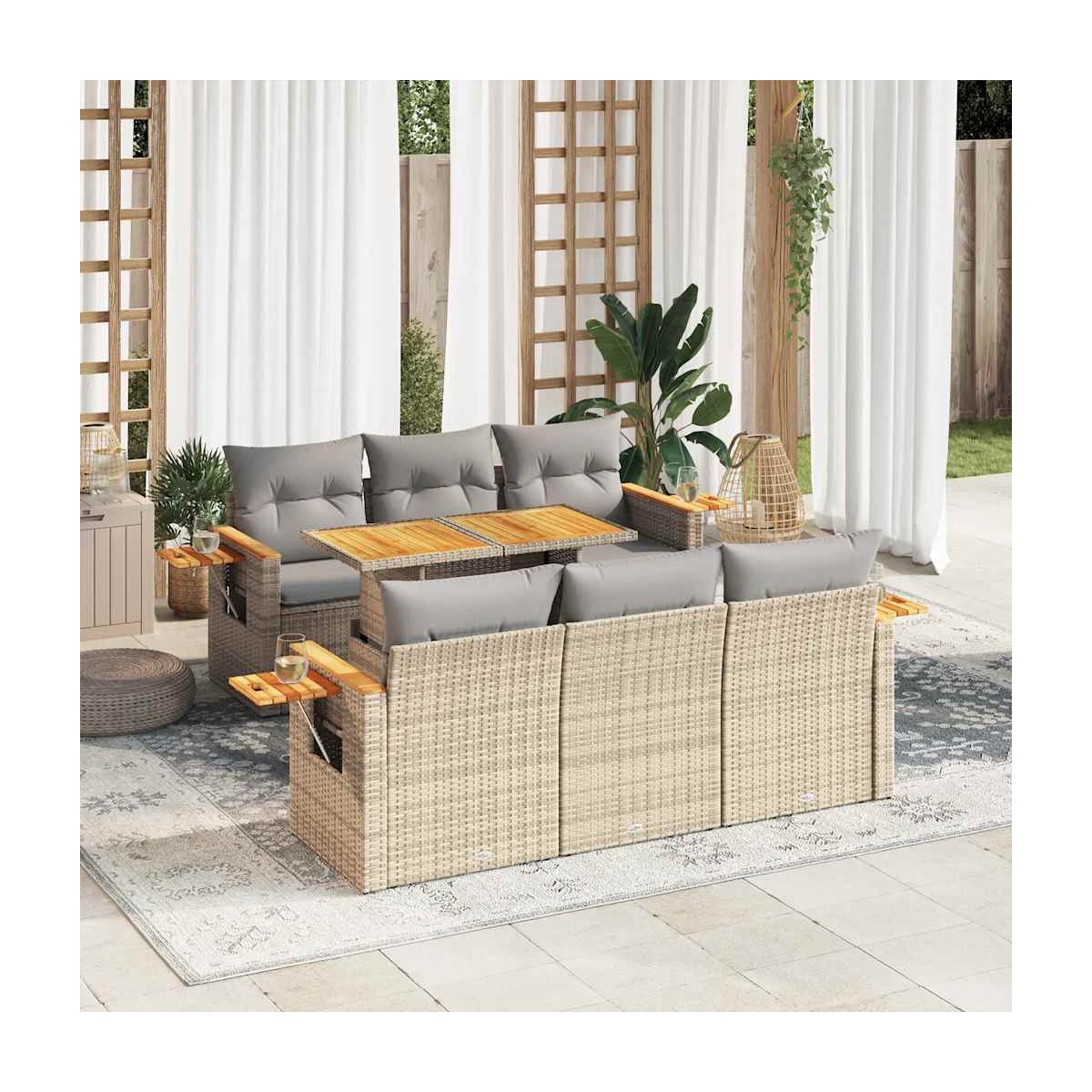 Este conjunto de sofás de jardín es el complemento perfecto para el jardín, terraza o patio, ya que proporciona un espacio confortable y acogedor para charlar con familiares y amigos o simplemente relajarte y disfrutar del aire libre.Material duradero: El ratán sintético, también conocido como ratán sintético, es un material sintético resistente y de bajo mantenimiento que se parece al ratán natural. Es ligero, fácil de limpiar y se usa comúnmente para muebles de exterior debido a su durabilidad y propiedades resistentes a la intemperie.Función de almacenamiento con bolsa resistente al agua: Cada asiento de jardín cuenta con un espacio de almacenamiento debajo del asiento, completo con una bolsa resistente al agua para guardar cojines, juguetes y otros artículos. Las bolsas interiores tienen una cubierta superior y se pueden sujetar de forma segura a los asientos con cierres de gancho y bucle para mayor estabilidad.Cómoda mesa auxiliar: Este mueble de exterior cuenta con una mesa auxiliar plegable con un muelle de gas, lo que proporciona un lugar práctico para mantener tus elementos esenciales al alcance de la mano.Funda desenfundable y lavable: Estos cojines de asiento cuentan con fundas desenfundables para facilitar el lavado y mantenimiento.Diseño modular: Este conjunto de muebles de exterior tiene un diseño modular, por lo que es completamente flexible y fácil de mover, para que puedas crear una disposición de muebles de exterior personalizada.Información útil:Para asegurarte de que tus muebles de exterior se mantengan hermosos, recomendamos protegerlos con una funda impermeable.