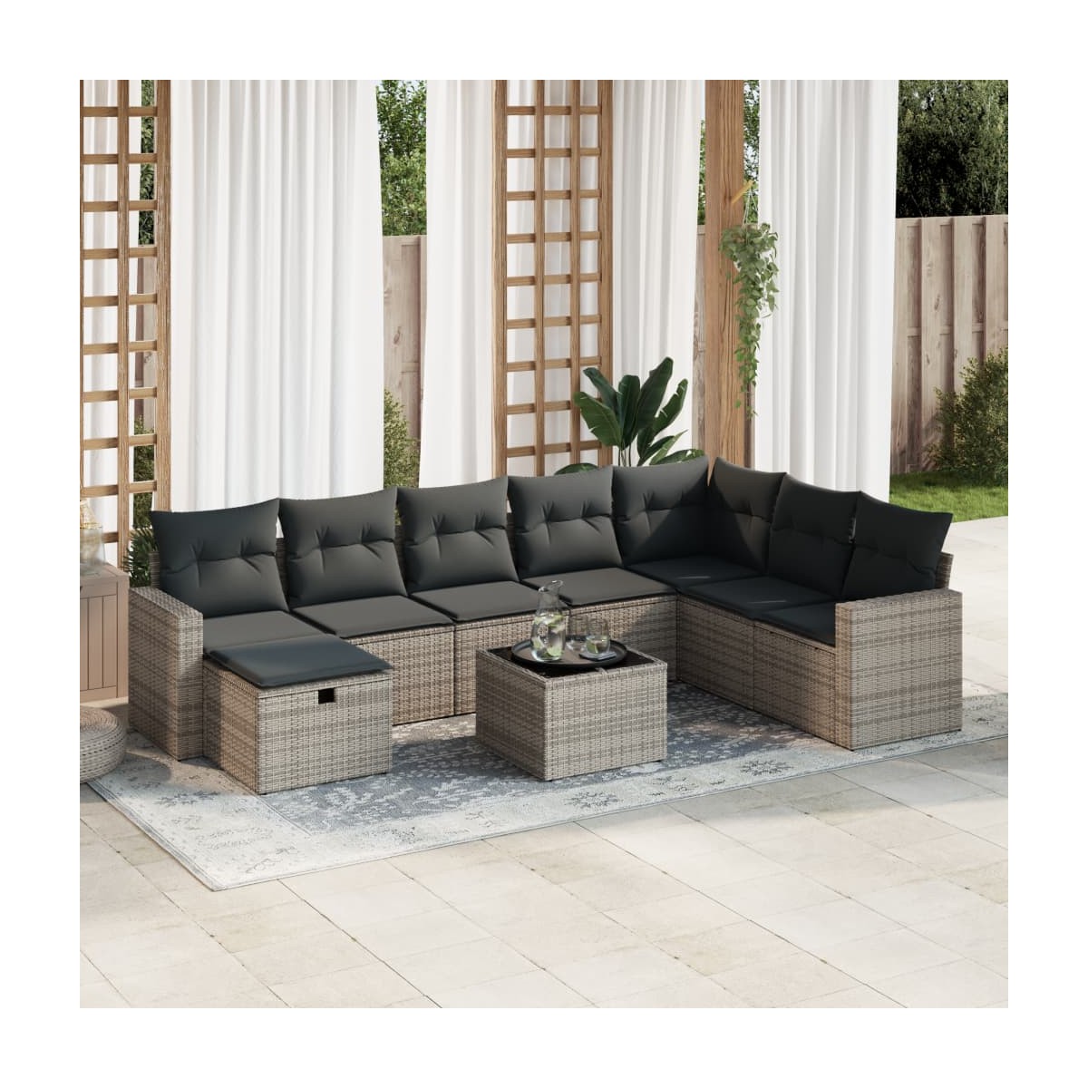 Este conjunto de sofás de jardín es el complemento perfecto para el jardín, terraza o patio, ya que proporciona un espacio confortable y acogedor para charlar con familiares y amigos o simplemente relajarte y disfrutar del aire libre. Material duradero: El ratán sintético, también conocido como ratán sintético, es un material sintético resistente y de bajo mantenimiento que se parece al ratán natural. Es ligero, fácil de limpiar y se usa comúnmente para muebles de exterior debido a su durabilidad y propiedades resistentes a la intemperie.Función de almacenamiento con bolsa resistente al agua: El mueble de jardín cuenta con espacio de almacenamiento debajo del asiento, completo con una bolsa resistente al agua para guardar cojines, juguetes y otros artículos. La bolsa interior se puede sujetar de forma segura a los muebles de exterior con cierres de gancho y bucle para mayor estabilidad.Reposapiés versátil: El taburete es versátil y sirve como un cómodo reposapiés para cuando descanses en el sofá o como asiento adicional en tu jardín.Funda desenfundable y lavable: Estos cojines de asiento cuentan con fundas desenfundables para facilitar el lavado y mantenimiento.Diseño modular: Este conjunto de muebles de exterior tiene un diseño modular, por lo que es completamente flexible y fácil de mover, para que puedas crear una disposición de muebles de exterior personalizada. Información útil:Para asegurarte de que tus muebles de exterior se mantengan hermosos, recomendamos protegerlos con una funda impermeable.