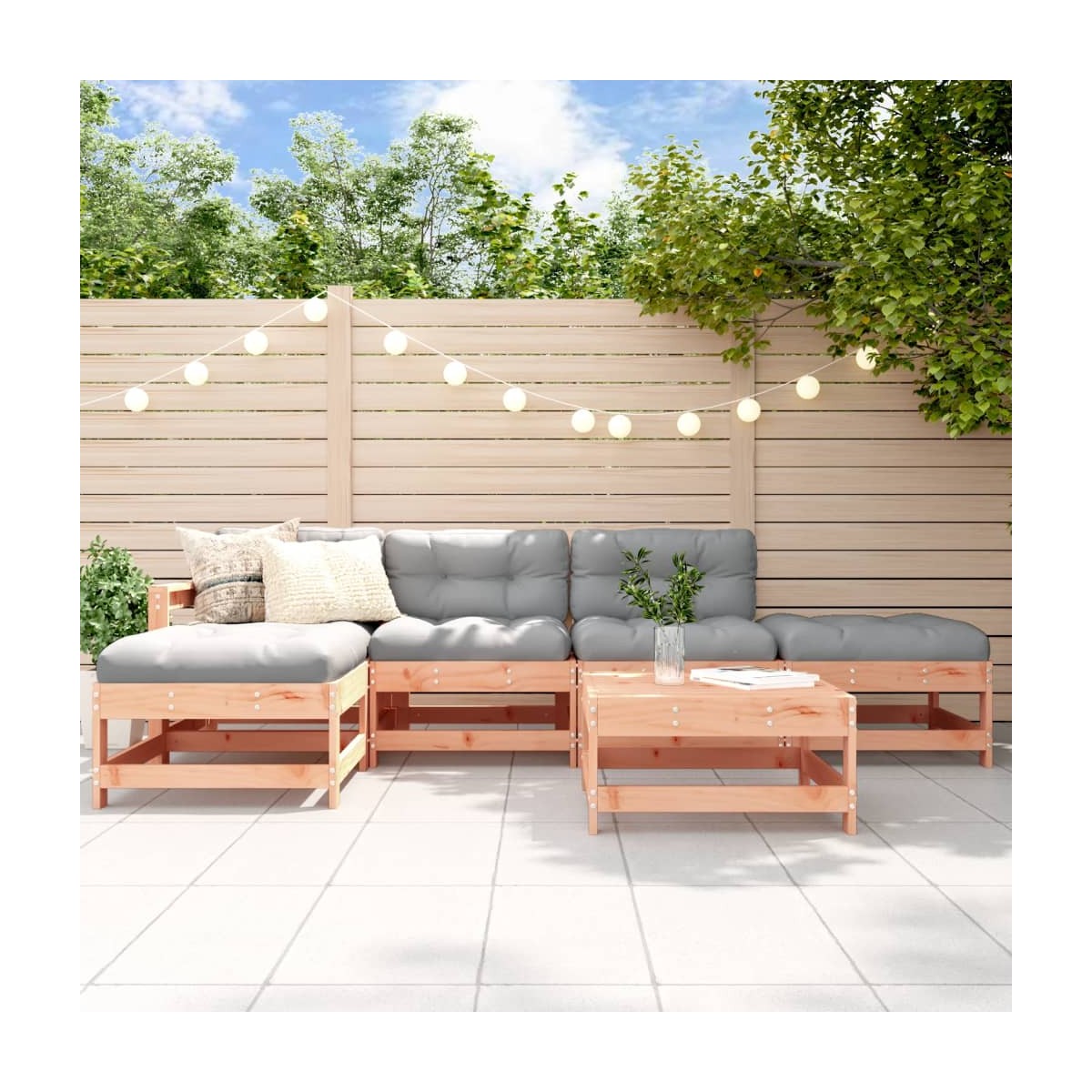 Este juego de sofás de jardín de madera, que destaca por su diseño de listones, será un gran complemento para el jardín, el patio o la terraza, para poder disfrutar de un rato agradable con la familia o los amigos. Madera maciza de douglas: La madera maciza de douglas es una madera muy duradera que es perfecta para exteriores. La madera de Douglas también es fuerte y necesita menos mantenimiento incluso bajo la influencia del clima.Cómodo asiento: El respaldo aporta un plus de comodidad al juego de muebles.Diseño modular: El juego de sofás es flexible y fácil de mover. Puedes combinarlo con otros segmentos modulares de la tienda web para crear tus propias configuraciones de juego de muebles de jardín. Información útil:Los cojines no están incluidos.Para asegurarte de que tus muebles de exterior se mantengan hermosos, recomendamos protegerlos con una funda impermeable.