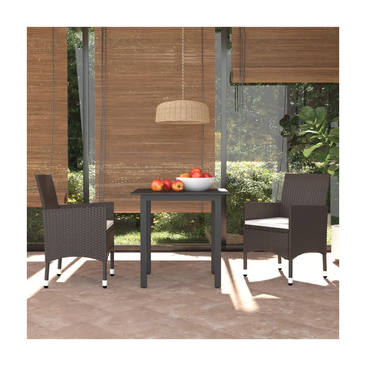 Este conjunto de comedor para jardín es la perfecta combinación de estilo y funcionalidad, y está destinado a ser el centro de atención de tu jardín, balcón o patio. Tiene una estructura de acero resistente envuelta con ratán PE resistente a la intemperie. Las sillas de jardín son a prueba de óxido y moho, lo que brinda años de relajación de calidad. La mesa de exterior presenta un tablero de cristal de líneas sencillas, fácil de limpiar y apto para exteriores. El marco de aluminio también garantiza estabilidad y robustez. Además, los cojines acolchados gruesos brindan la máxima comodidad durante su tiempo sentado. Este juego de comedor para patio es fácil de mover gracias a su construcción ligera. Nota: Para prolongar la vida de tus muebles de exterior, te recomendamos que los protejas con una funda impermeable.