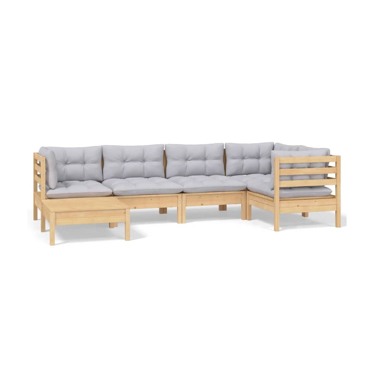 Este juego de muebles de jardín es una excelente opción para relajarte y disfrutar del buen tiempo, echar una siesta o charlar con tu familia o amigos. El conjunto de muebles de jardín está hecho de madera maciza de pino, lo que lo hace robusto y estable. ¡Puedes combinarlo con otros segmentos modulares para crear tus propias configuraciones de set de salón de jardín personal! Nota: Para prolongar la vida útil de los muebles de exterior, te recomendamos que los limpies con regularidad y no los dejes al aire libre sin protección innecesariamente.Limpia: Usa una solución de jabón suave.Almacenamiento: Si es posible, guárdalos en un lugar fresco y seco en el interior. Si el producto se almacena al aire libre, protégelo con una funda impermeable. Limpia y seca el exceso de agua o nieve de las superficies planas después de una lluvia o nevada. Permite la ventilación para evitar daños relacionados con la humedad.