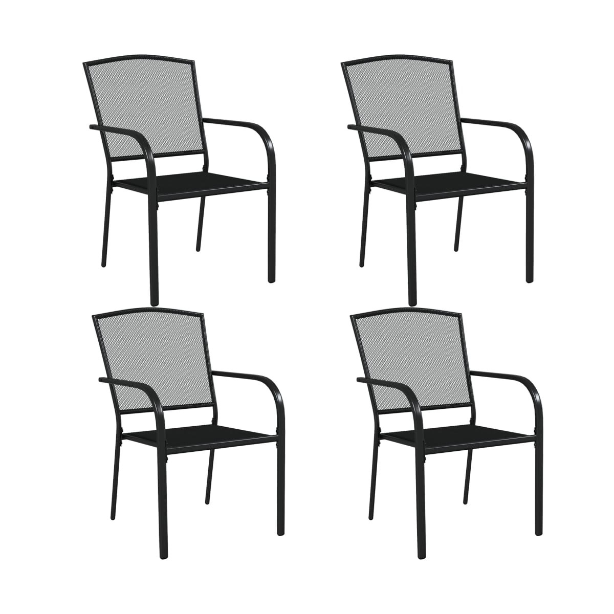Este moderno conjunto de comedor de jardín, con un diseño elegante y contemporáneo, es una opción perfecta para relajarse en el jardín. Material resistente: El acero es un material muy duro y resistente. Ofrece solidez y estabilidad. El recubrimiento en polvo y el revestimiento electrónico sobre el acero crean una capa protectora contra el desgaste y la corrosión.Estructura estable: La estructura de acero con recubrimiento en polvo y electroforesis garantiza la solidez y estabilidad del conjunto de comedor.Función apilable: Las sillas de comedor son apilables para ahorrar espacio cuando no se usan.Práctica mesa: La resistente superficie de la mesa de comedor es perfecta para colocar comidas, bebidas y artículos decorativos.Patas elegantes: Las patas curvas de la mesa de comedor para jardín crean un aire de elegancia al mismo tiempo que garantizan la estabilidad.Diseño de malla: El juego de comedor de jardín con un diseño de malla se ve sencillo y atemporal y es adecuado para balcones, porches, jardines, patios, etc. Nota:Para asegurarte de que tus muebles de exterior se mantengan hermosos, recomendamos protegerlos con una funda impermeable.