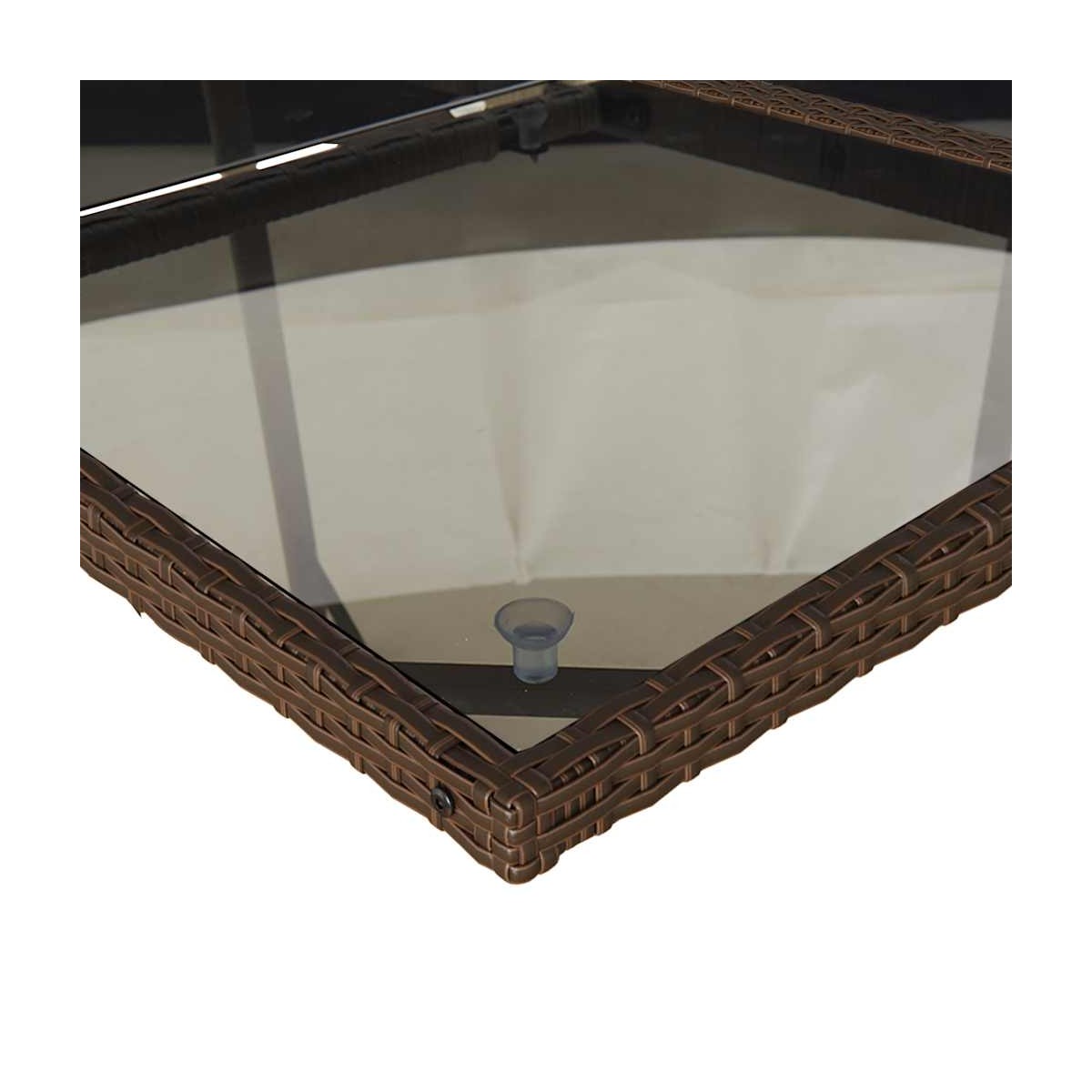 - Material: Ratán PE, acero con recubrimiento en polvo, vidrio templado