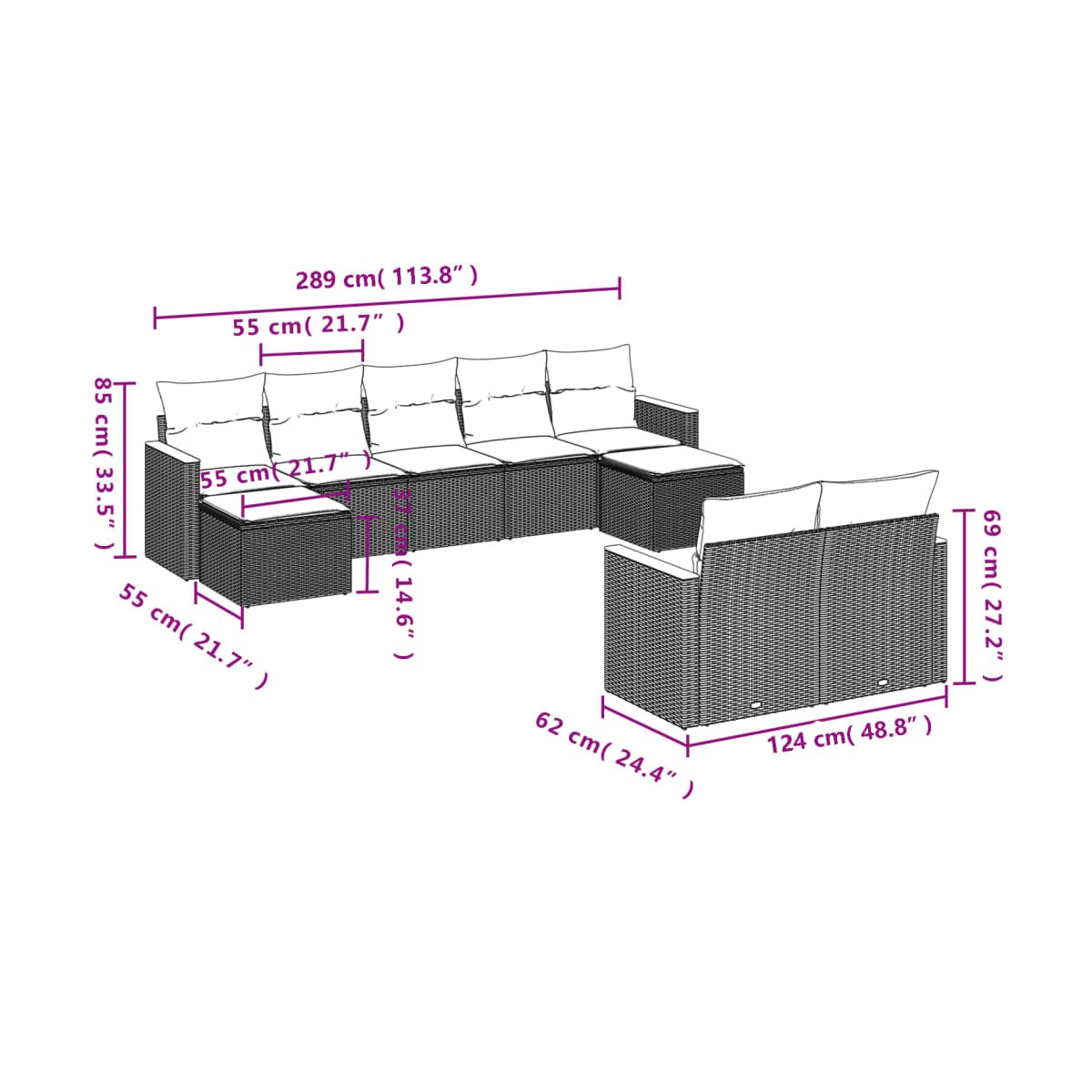 - 9 x Cojines de asiento con funda extraíble y lavable