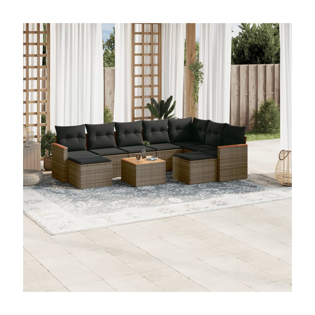 Este conjunto de sofás de jardín es el complemento perfecto para el jardín, terraza o patio, ya que proporciona un espacio confortable y acogedor para charlar con familiares y amigos o simplemente relajarte y disfrutar del aire libre. Material duradero: El ratán PE, también conocido como ratán sintético, es un material sintético resistente y de bajo mantenimiento que se parece al ratán natural. Es ligero, fácil de limpiar y se usa comúnmente para muebles de exterior debido a su durabilidad y propiedades resistentes a la intemperie.Función de almacenamiento con bolsa resistente al agua: El mueble de jardín cuenta con espacio de almacenamiento debajo del asiento, completo con una bolsa resistente al agua para guardar cojines, juguetes y otros artículos. La bolsa interior se puede sujetar de forma segura a los muebles de exterior con cierres de gancho y bucle para mayor estabilidad.Superficie estable y fácil de limpiar: Esta mesa de jardín tiene una superficie de madera de acacia que es resistente, duradero y fácil de limpiar con un paño húmedo.Funda desenfundable y lavable: Estos cojines de asiento cuentan con fundas desenfundables para facilitar el lavado y mantenimiento.Diseño modular: Este conjunto de muebles de exterior tiene un diseño modular, por lo que es completamente flexible y fácil de mover, para que puedas crear una disposición de muebles de exterior personalizada. Información útil:Para asegurarte de que tus muebles de exterior se mantengan hermosos, recomendamos protegerlos con una funda impermeable.