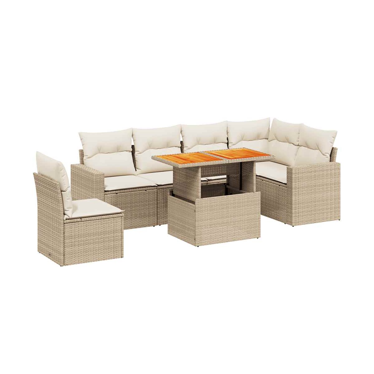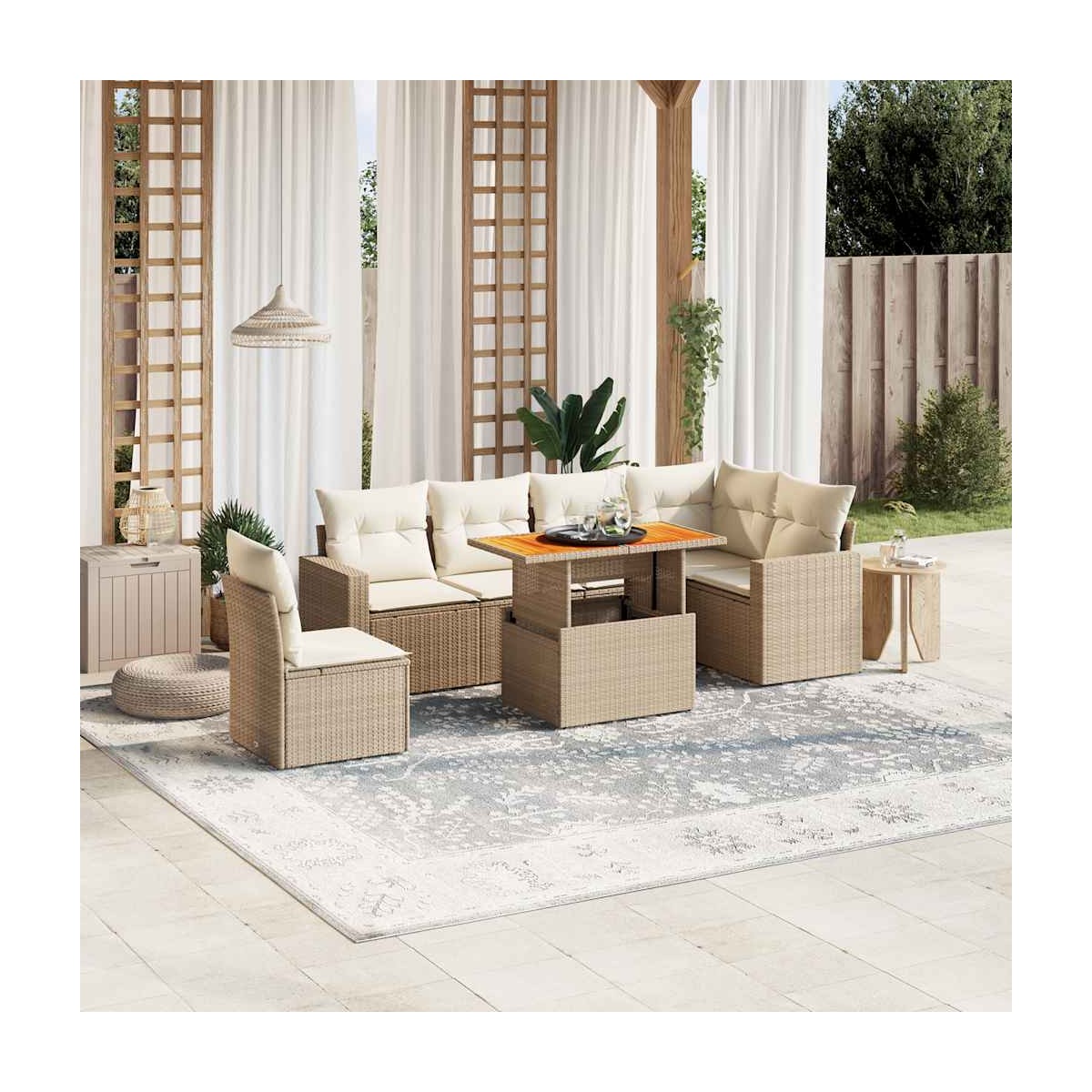 Este conjunto de sofás de jardín es el complemento perfecto para el jardín, terraza o patio, ya que proporciona un espacio confortable y acogedor para charlar con familiares y amigos o simplemente relajarte y disfrutar del aire libre. Material duradero: El ratán PE, también conocido como ratán sintético, es un material sintético resistente y de bajo mantenimiento que se parece al ratán natural. Es ligero, fácil de limpiar y se usa comúnmente para muebles de exterior debido a su durabilidad y propiedades resistentes a la intemperie.Tablero ajustable: El tablero de la mesa se puede levantar para que la mesa sea más alta, lo que transforma la mesa de jardín de una mesa de centro a una mesa de comedor. Es perfecta para invitar a invitados o comer al aire libre.Experiencia de asiento cómoda: Estos muebles de exterior, completos con cojines acolchados gruesos, ofrecen una experiencia de asiento cómoda.Funda desenfundable y lavable: Estos cojines de asiento cuentan con fundas desenfundables para facilitar el lavado y mantenimiento.Diseño modular: Este conjunto de muebles de exterior tiene un diseño modular, por lo que es completamente flexible y fácil de mover, para que puedas crear una disposición de muebles de exterior personalizada. Información útil:Para asegurarte de que tus muebles de exterior se mantengan hermosos, recomendamos protegerlos con una funda impermeable.