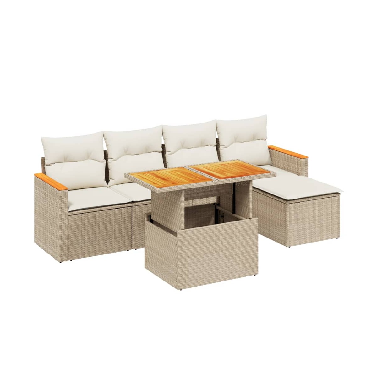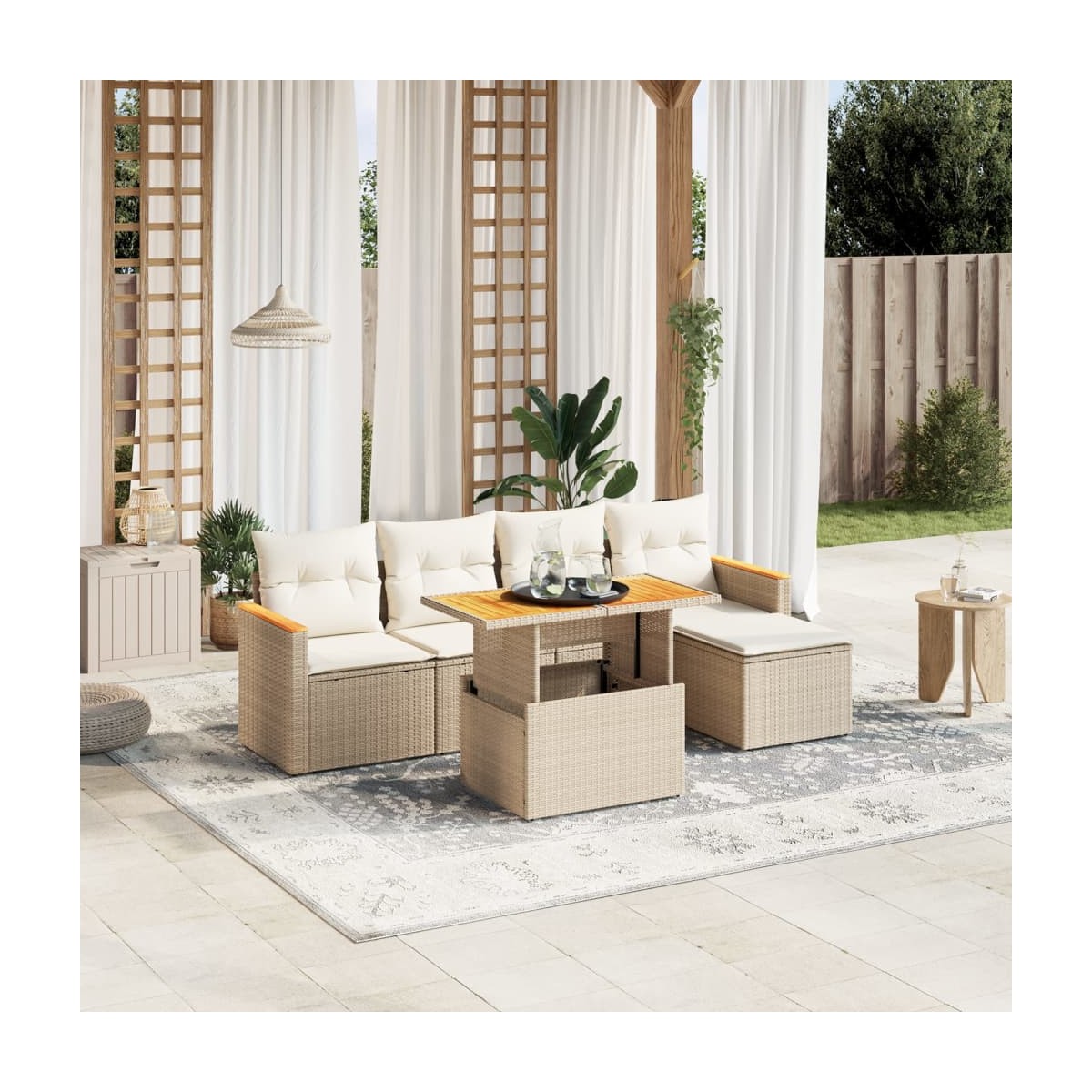 Este conjunto de sofás de jardín es el complemento perfecto para el jardín, terraza o patio, ya que proporciona un espacio confortable y acogedor para charlar con familiares y amigos o simplemente relajarte y disfrutar del aire libre. Material duradero: El ratán PE, también conocido como ratán sintético, es un material sintético resistente y de bajo mantenimiento que se parece al ratán natural. Es ligero, fácil de limpiar y se usa comúnmente para muebles de exterior debido a su durabilidad y propiedades resistentes a la intemperie.Tablero ajustable: El tablero de la mesa se puede levantar para que la mesa sea más alta, lo que transforma la mesa de jardín de una mesa de centro a una mesa de comedor. Es perfecta para invitar a invitados o comer al aire libre.Experiencia de asiento cómoda: Estos muebles de exterior, completos con cojines acolchados gruesos, ofrecen una experiencia de asiento cómoda.Funda desenfundable y lavable: Estos cojines de asiento cuentan con fundas desenfundables para facilitar el lavado y mantenimiento.Diseño modular: Este conjunto de muebles de exterior tiene un diseño modular, por lo que es completamente flexible y fácil de mover, para que puedas crear una disposición de muebles de exterior personalizada. Información útil:Para asegurarte de que tus muebles de exterior se mantengan hermosos, recomendamos protegerlos con una funda impermeable.
