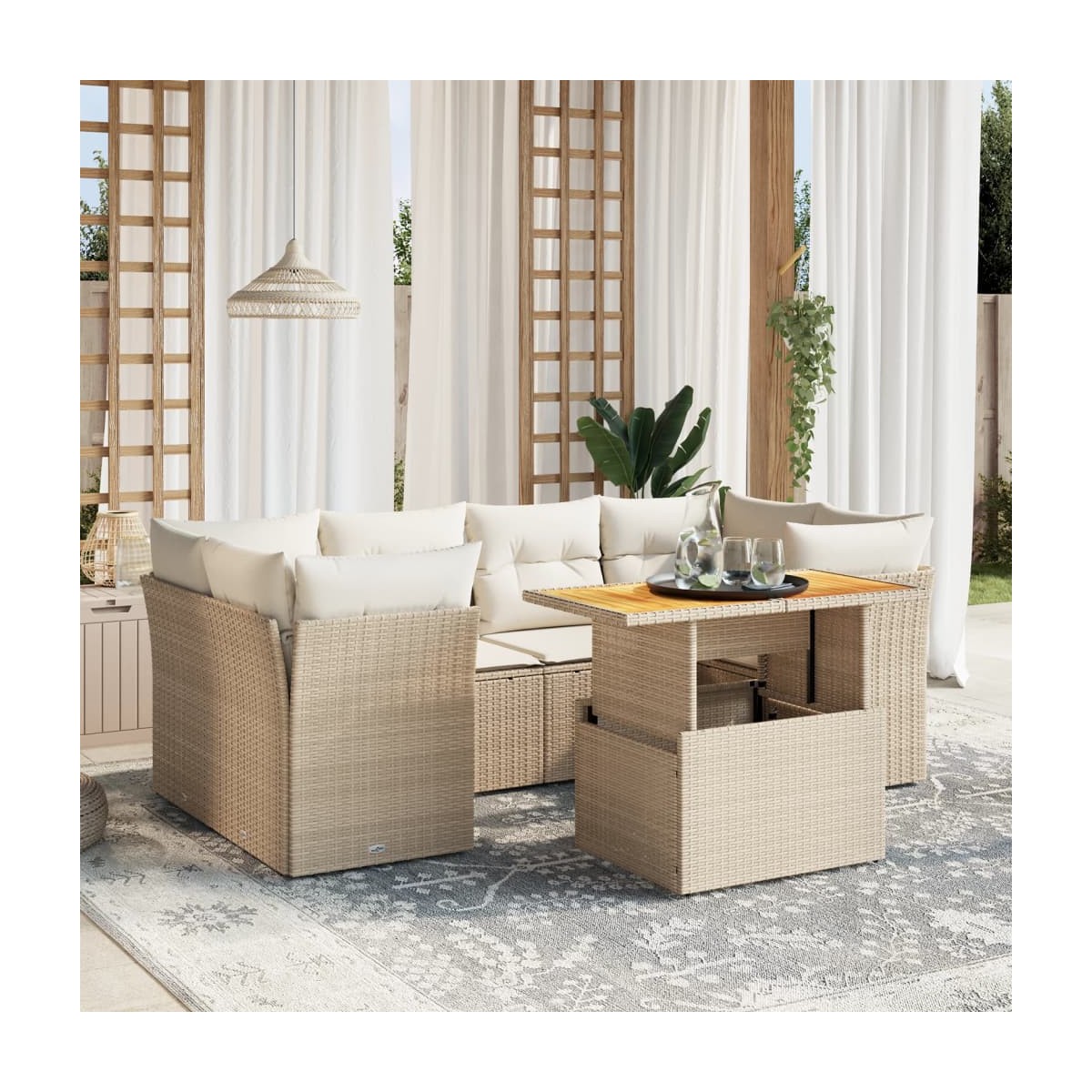 Este conjunto de sofás de jardín es el complemento perfecto para el jardín, terraza o patio, ya que proporciona un espacio confortable y acogedor para charlar con familiares y amigos o simplemente relajarte y disfrutar del aire libre. Material duradero: El ratán PE, también conocido como ratán sintético, es un material sintético resistente y de bajo mantenimiento que se parece al ratán natural. Es ligero, fácil de limpiar y se usa comúnmente para muebles de exterior debido a su durabilidad y propiedades resistentes a la intemperie.Tablero ajustable: El tablero de la mesa se puede levantar para que la mesa sea más alta, lo que transforma la mesa de jardín de una mesa de centro a una mesa de comedor. Es perfecta para invitar a invitados o comer al aire libre.Experiencia de asiento cómoda: Estos muebles de exterior, completos con cojines acolchados gruesos, ofrecen una experiencia de asiento cómoda.Funda desenfundable y lavable: Estos cojines de asiento cuentan con fundas desenfundables para facilitar el lavado y mantenimiento.Diseño modular: Este conjunto de muebles de exterior tiene un diseño modular, por lo que es completamente flexible y fácil de mover, para que puedas crear una disposición de muebles de exterior personalizada. Información útil:Para asegurarte de que tus muebles de exterior se mantengan hermosos, recomendamos protegerlos con una funda impermeable.